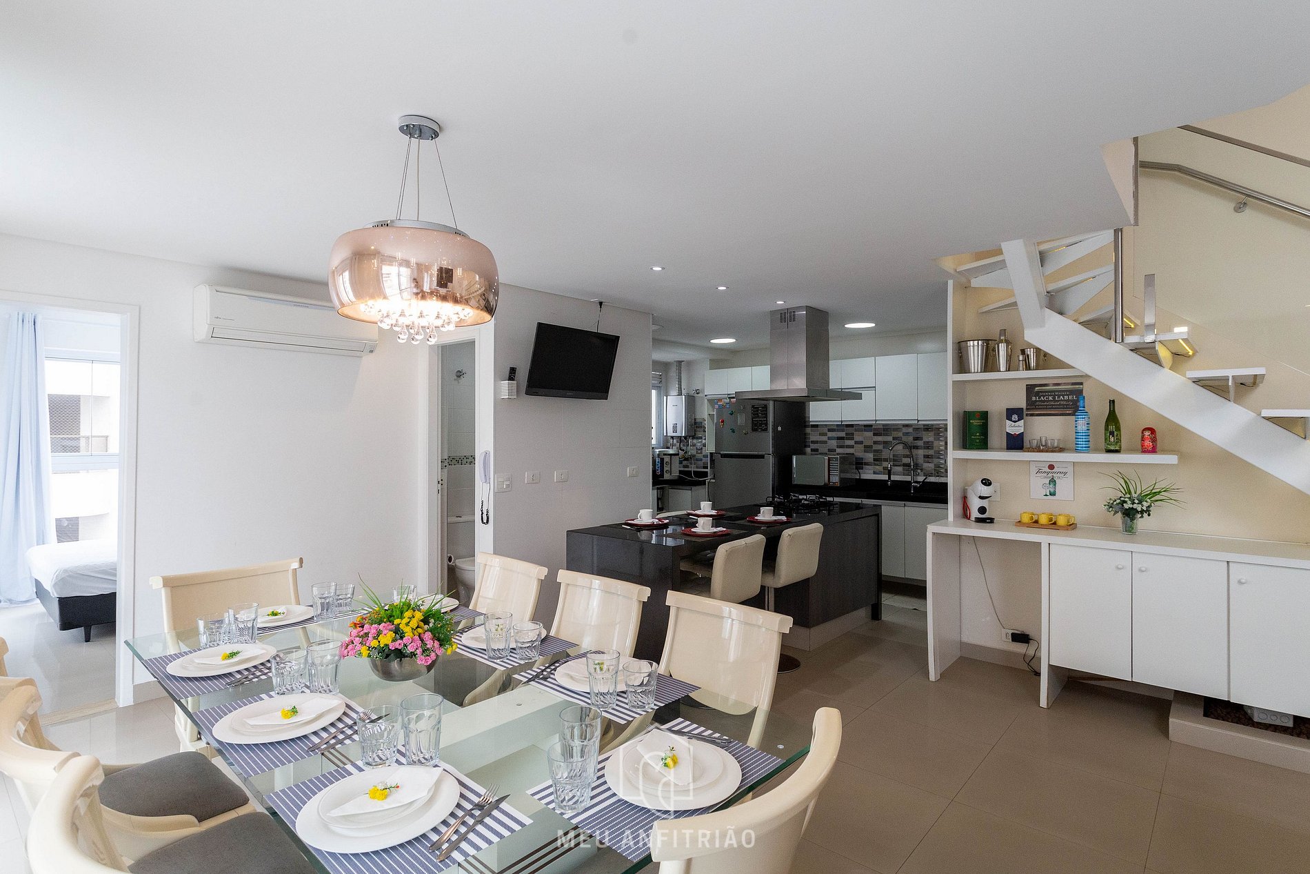 Located on Praia das Asturias in Guarujá, our 215m² triplex apartment accommodates up to 6 people and is located in the Solaris Building, being ideal for those looking for comfort and leisure in Guarujá.