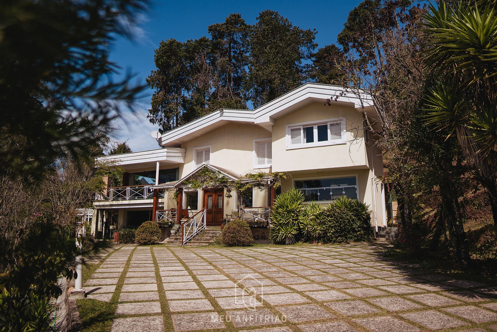 Our house was designed by architect Jean Gillon, has 450m² and accommodates up to 13 people in 3 suites, 1 bedroom and 1 small support room at the back, in addition to having a gourmet area, solarium and views of the Araucária Valley.