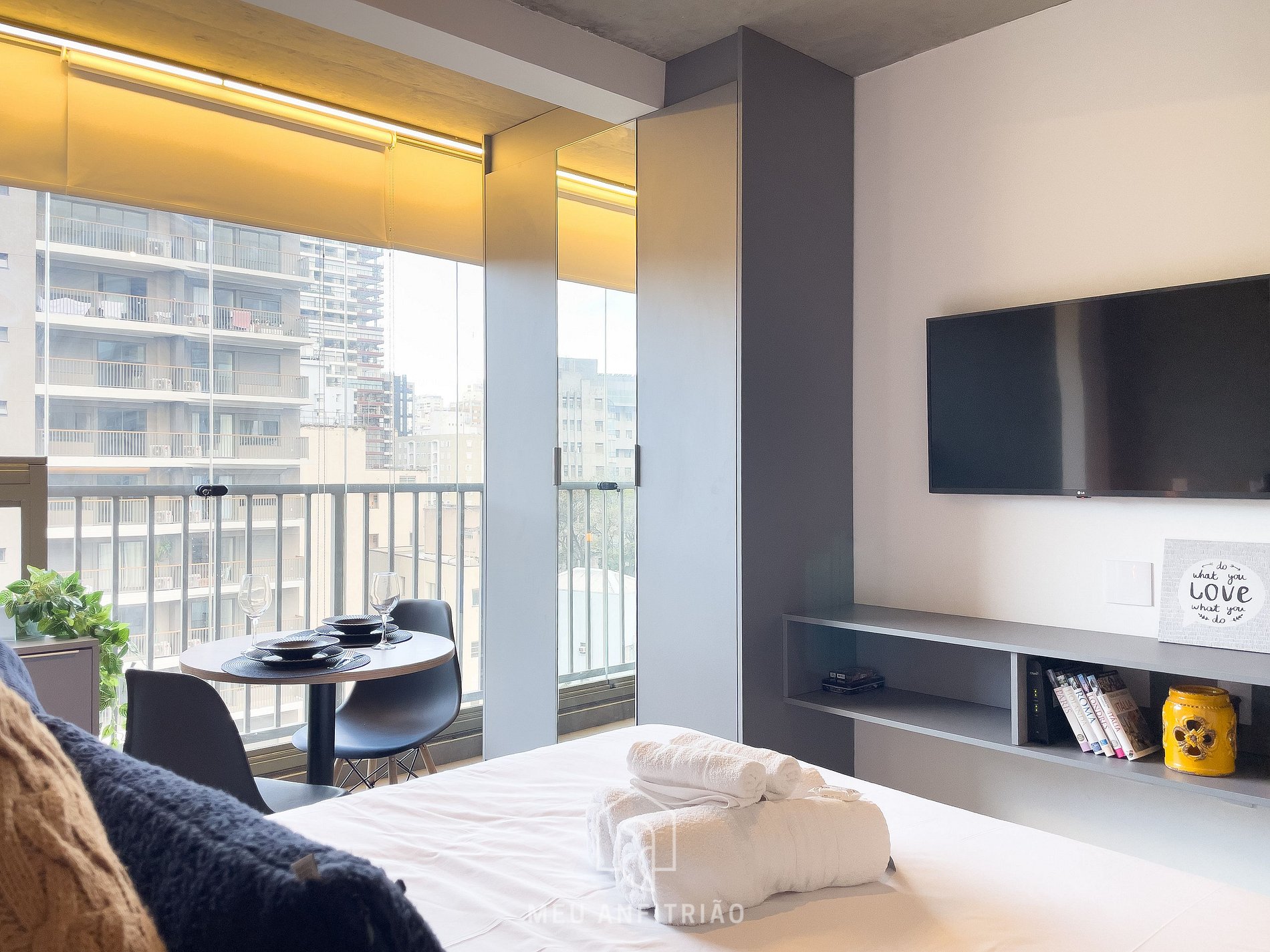 Our 23m² studio accommodates two people in a double bed. The condominium has a 24-hour doorman and a leisure area.