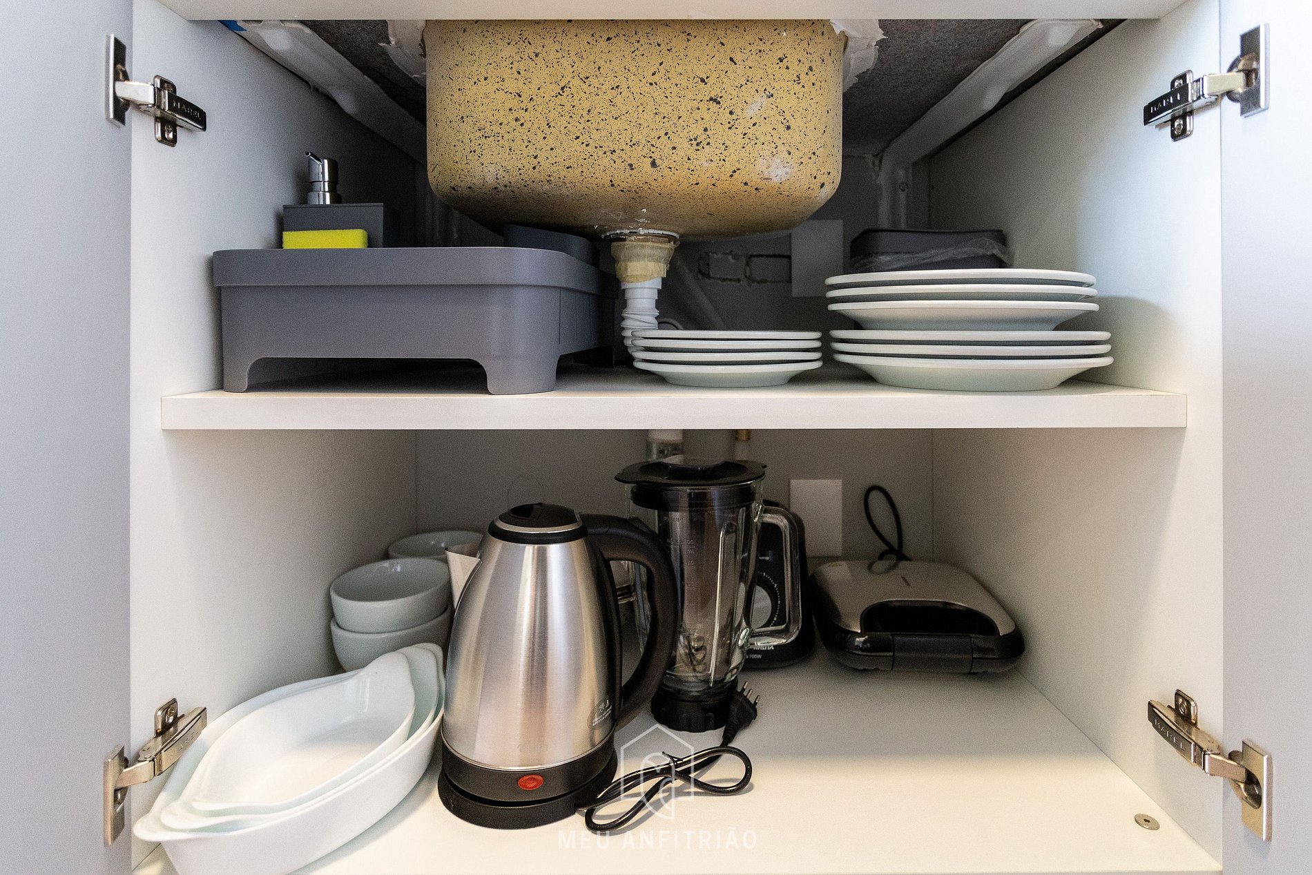 - A kitchen equipped with the ideal appliances for a convenient stay, such as a cooktop stove, refrigerator, electric oven, range hood, water filter, electric kettle, Nespresso Vertuo POP coffee maker, blender, and more.