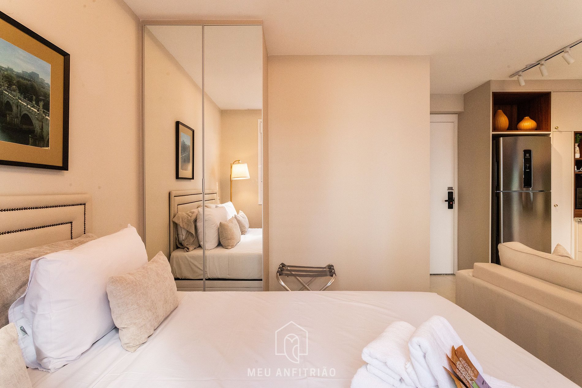Espaço novo, muito limpo e de fácil acesso. Tudo funciona perfeitamente bem: geladeira grande, ar condicionado, fogão de indução, ferro de passar e a vapor, microondas, Airfryer, sanduicheira, liquidificador... Possui tudo o que necessário para a estadia: talhares, panelas, copos, taças... O chuveiro é excelente e a cama muito confortável. A área da piscina é muito agradável. Portaria 24h. Recomendo muito!