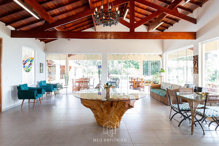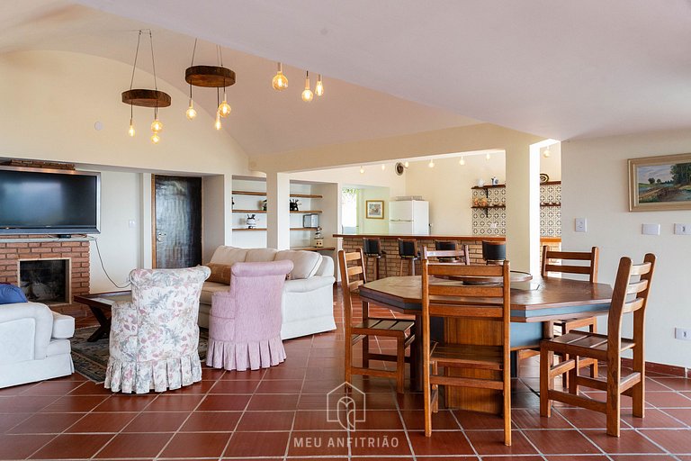 Our guesthouse has a swimming pool, barbecue, picnic area, mountain views and is just a few meters from a center with several options of restaurants, cafes and grocery stores, all of which can be reached on foot.