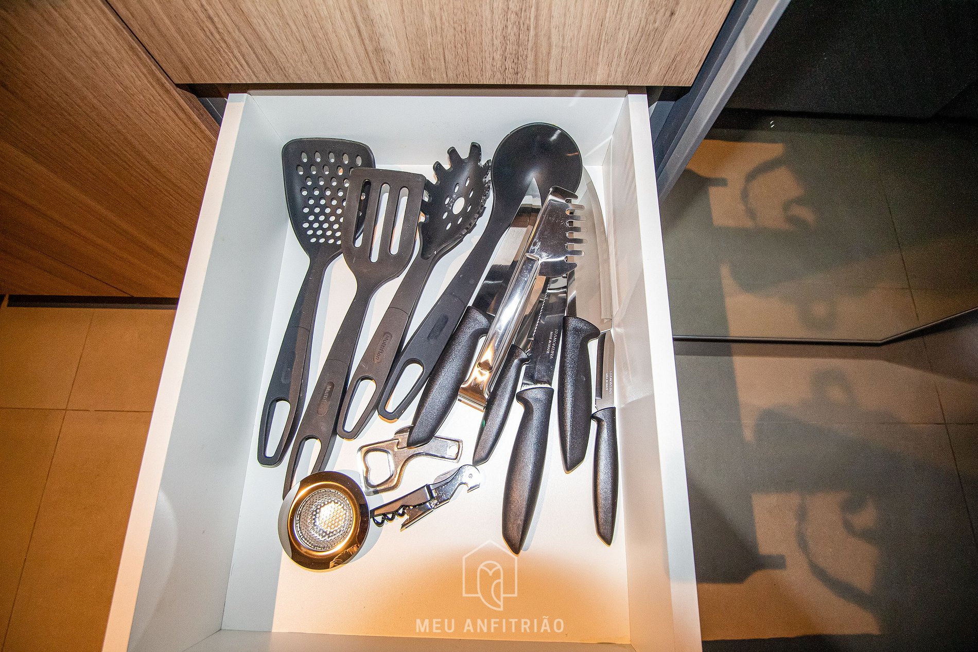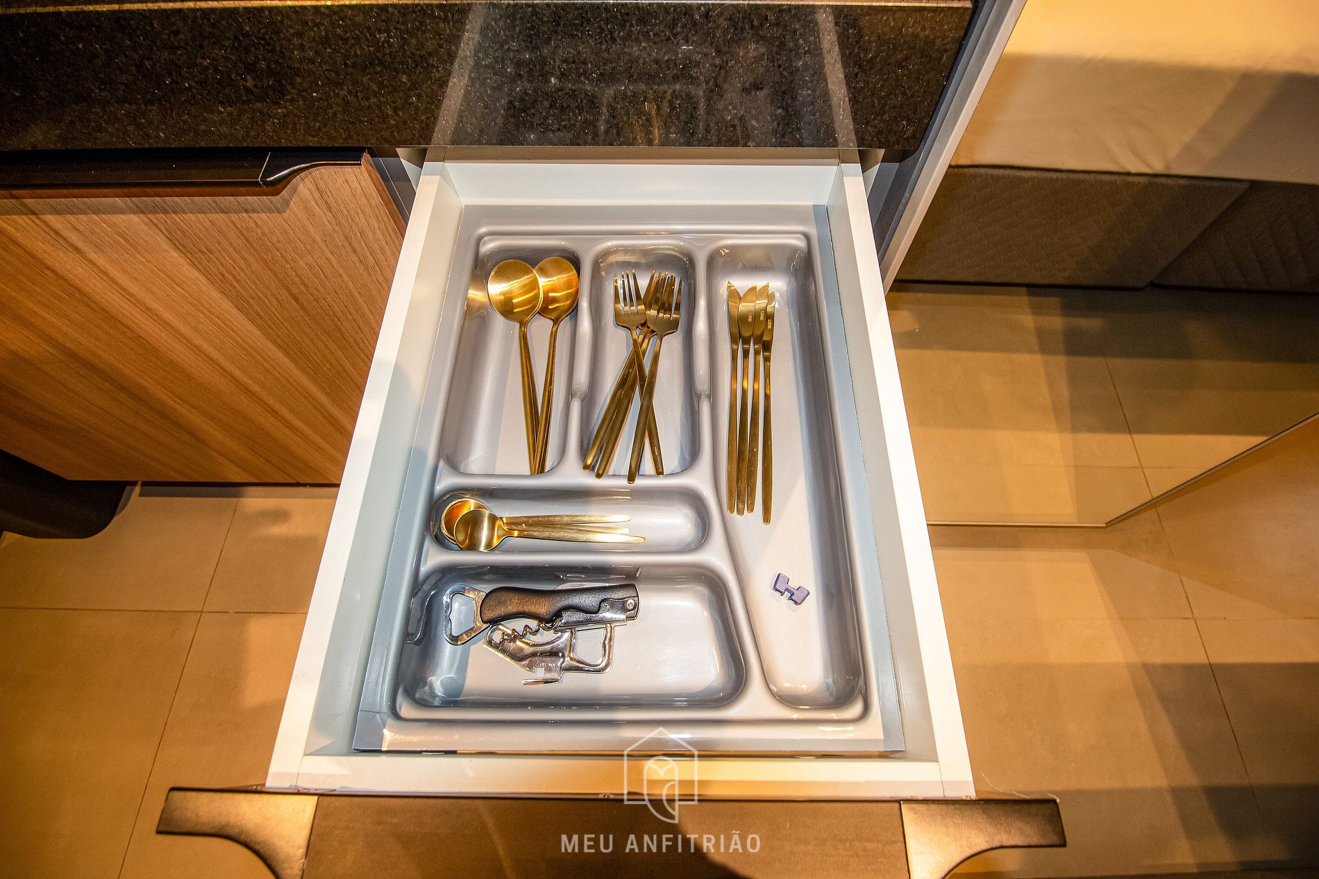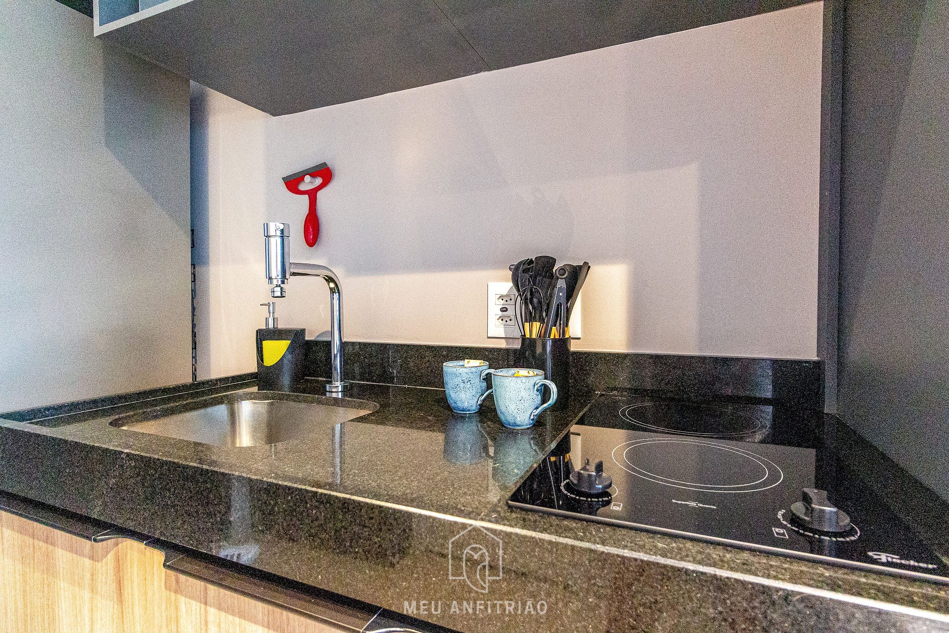 - A fully equipped kitchen with the most practical utensils and appliances for your stay, such as a refrigerator, cooktop stove, microwave, electric coffee maker, blender, sandwich maker, capsule coffee machine, among others.