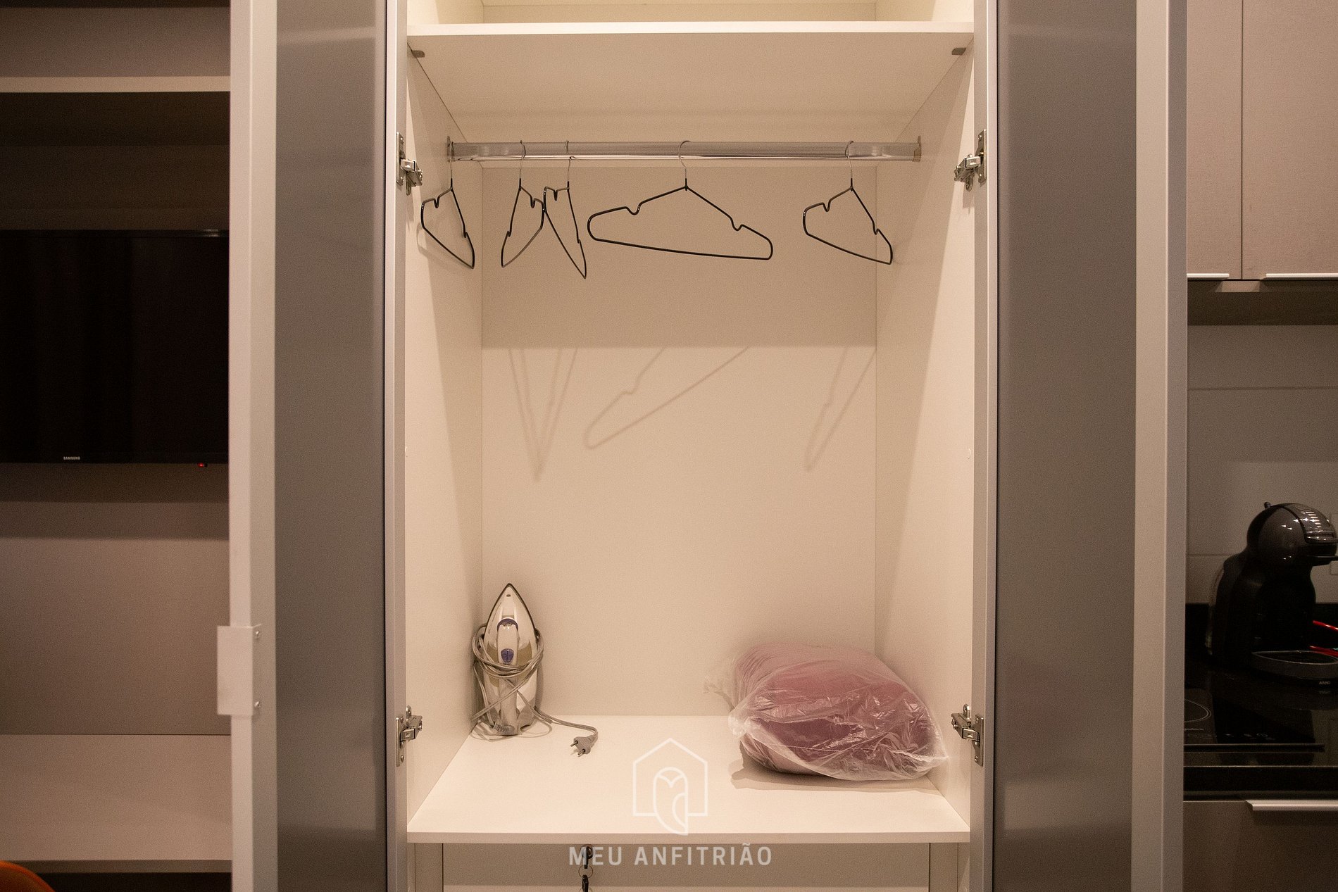 In the same environment we have a kitchen with utensils necessary for a practical stay, bathroom, closet, desk for home office, SMART TV and Nespresso coffee machine, but it is necessary to bring the capsules themselves. It is possible to buy them at the convenience store of the condominium that is on the ground floor within the coworking.