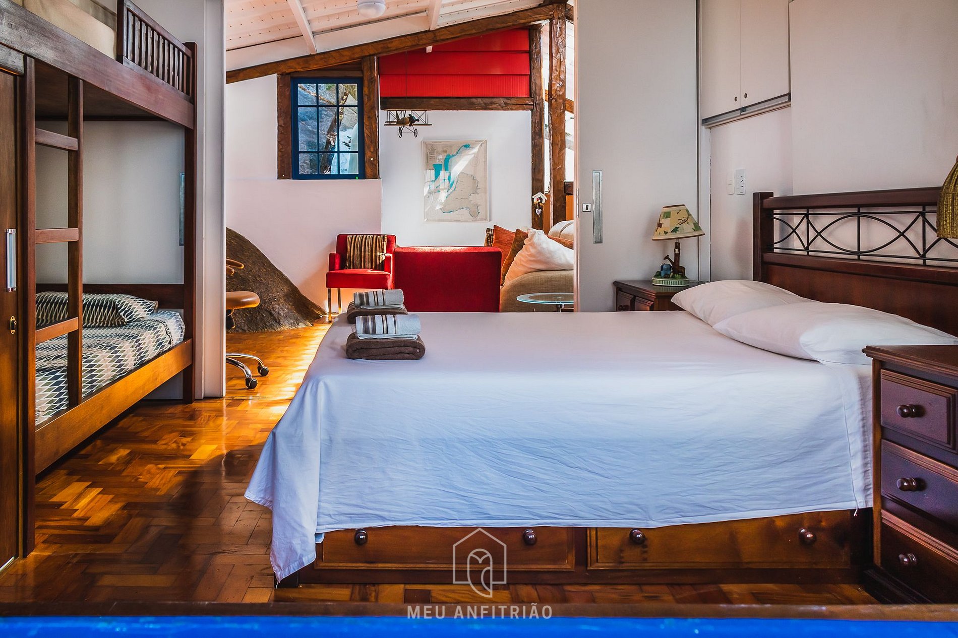 A casa é super aconchegante e tem de tudo.