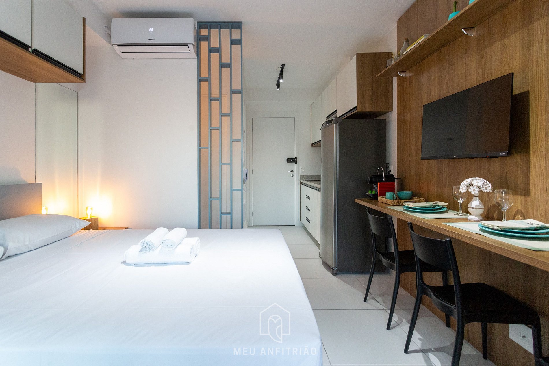 Minha estadia foi excelente! Todas as vezes que precisei encontrar em contato fui rapidamente respondida. A estrutura do condomínio é realmente incrível. O Studio é confortável, cama confortável, boas toalhas. A vista da varanda foi um respiro aos dias movimentados do Congresso. Tive eventos na FGV e no Centro de Convenções Frei Caneca e fiz tudo caminhando. Excelentes opções de restaurantes na vizinha. Com certeza retornarei.