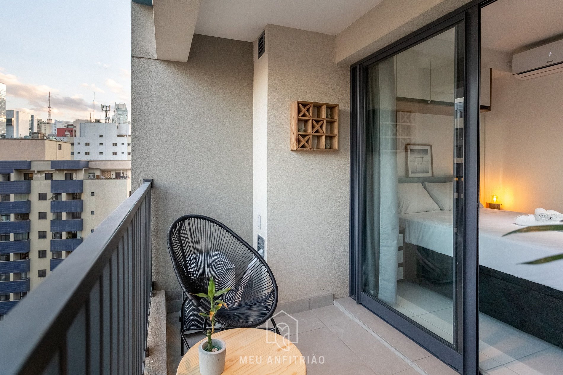 Located in a condominium with complete leisure infrastructure and 24-hour in person concierge, our studio is a great option for those looking for practicality and comfort. As we are on the 14th, we have a beautiful view of the city.
