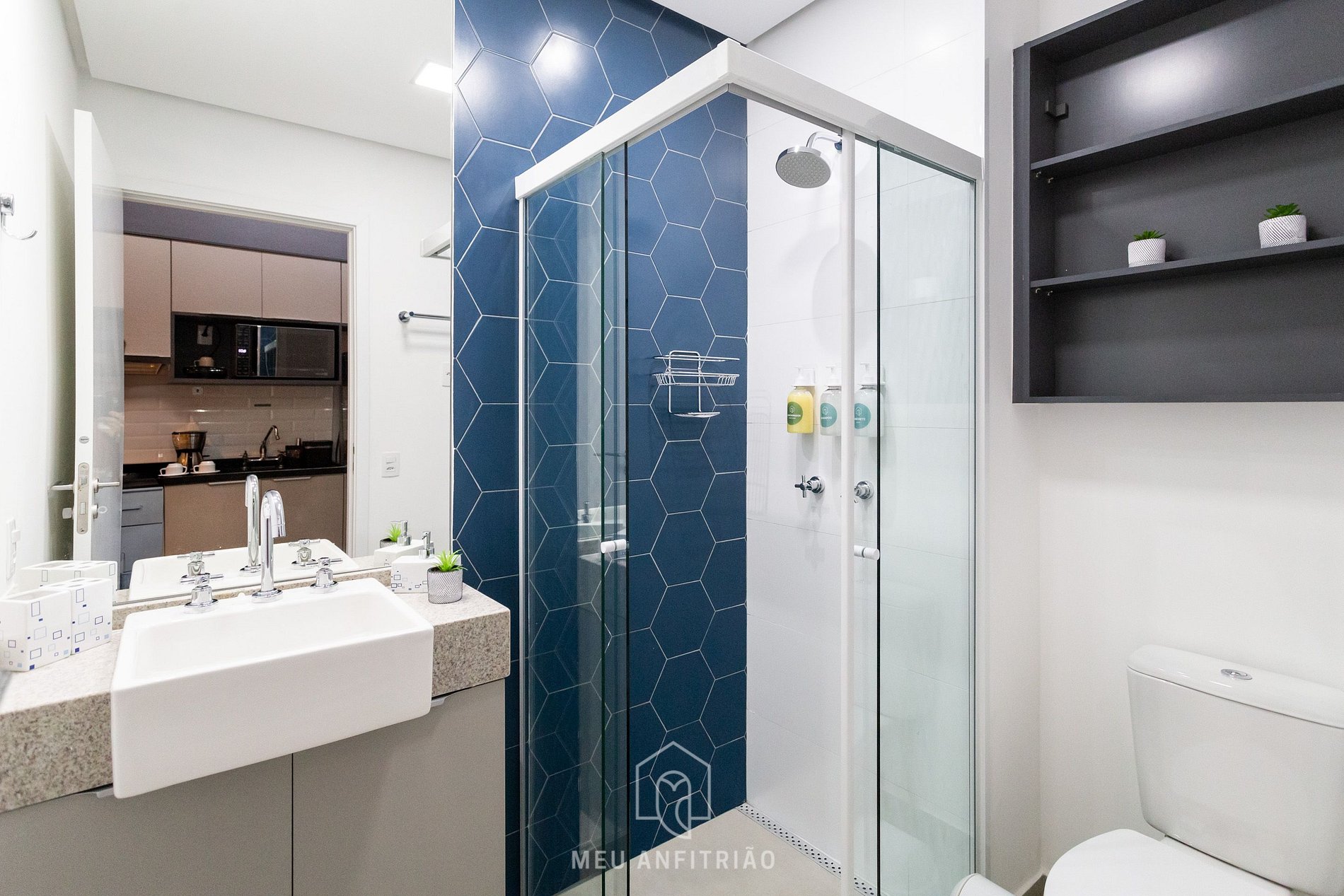 Upon entering, the guest will have access to a kitchen with all the necessary utensils for a practical stay, including induction stove, refrigerator, microwave, blender and coffee maker and sandwich maker.