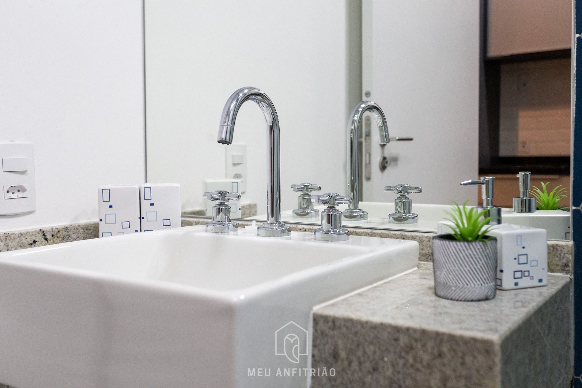 Located in a condominium with leisure infrastructure, our 30m² studio accommodates up to 3 people in a double bed and a sofa bed, making it a great option for those looking for practicality and comfort. It has a shared laundry, home office space, swimming pool and gym.
