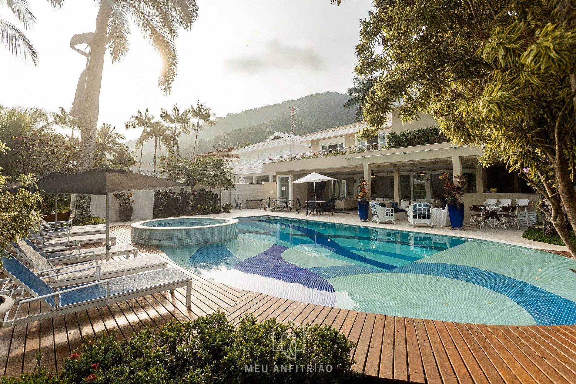Located in the high-end condominium Costa Verde da Tabatinga, in Caraguatatuba, our 800m2 house accommodates 32 people in 9 suites. The house has a spacious balcony, complete gourmet area, swimming pool with beach, large garden and much more!