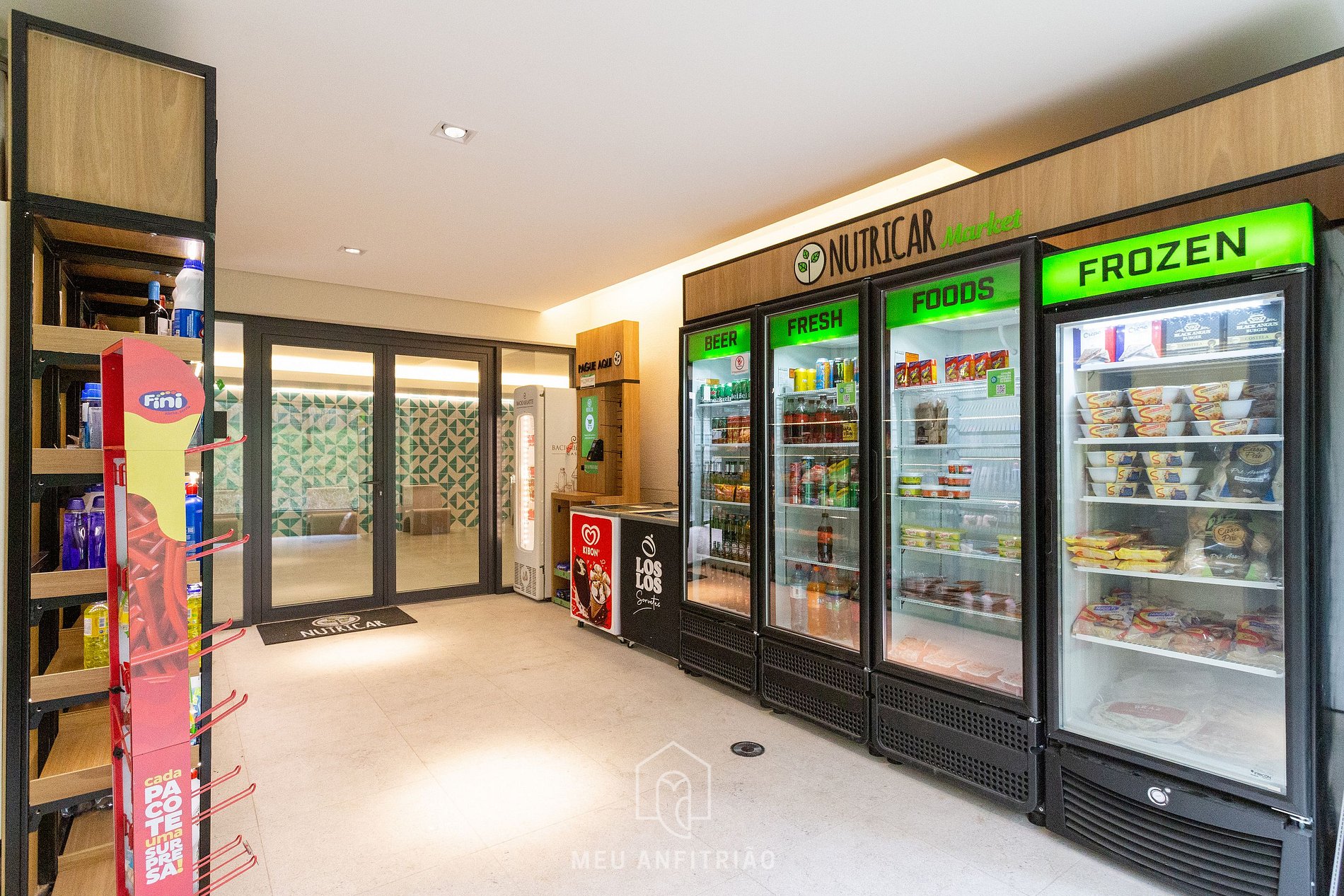 - Guests can use the condominium's common areas, which include a gym, sauna, outdoor pool, and heated indoor pool, as well as a 24-hour mini-market and coworking space. Next to the building there is a Smart Fit gym and a Minuto Pão de Açúcar supermarket. The party room is not available for guest use. The water quality of the pools is checked on Thursdays and Fridays, and unavailability may occur on one of these days if water replacement is necessary.
