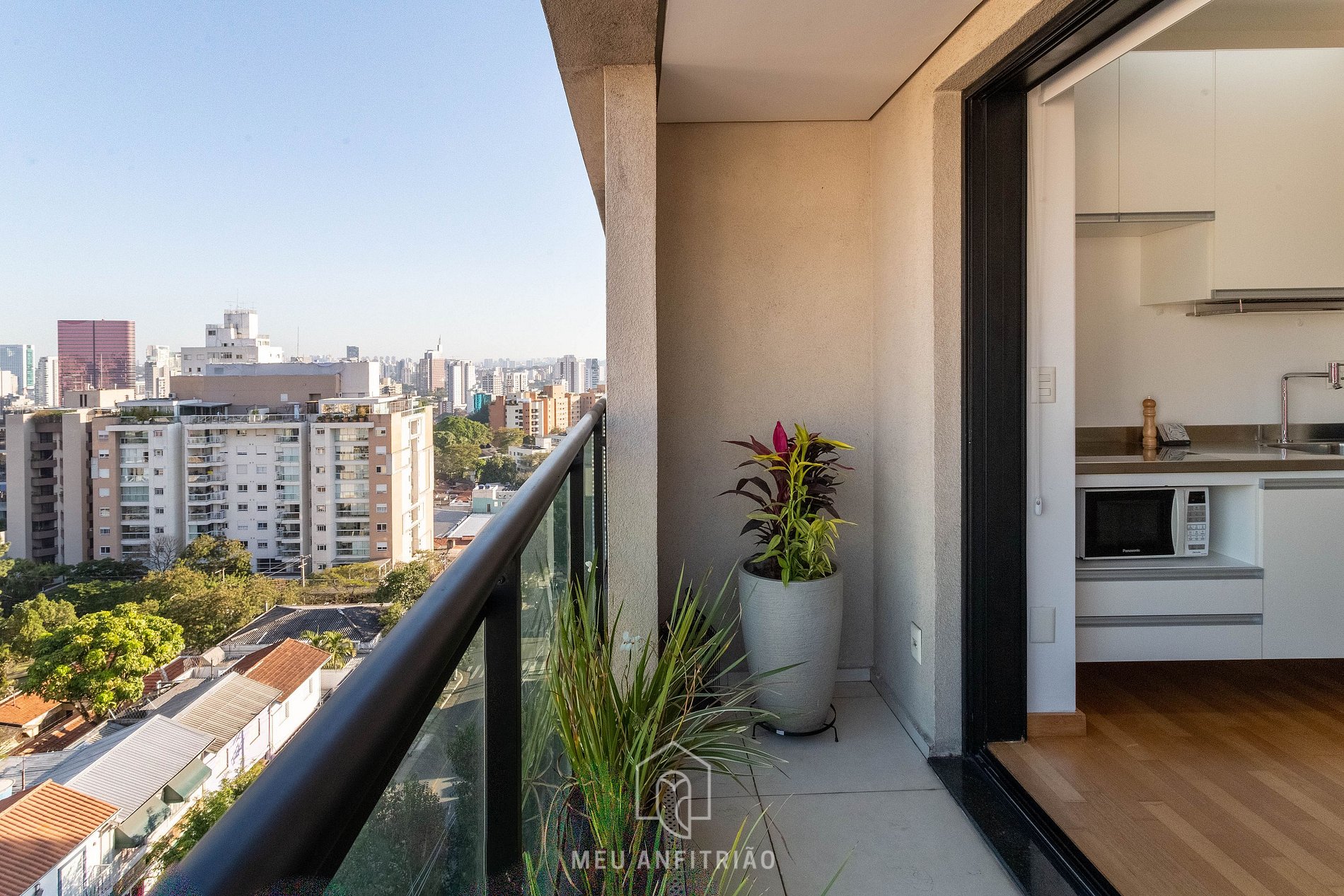 Located in a condominium with 24-hour in person concierge and leisure infrastructure, our open-concept studio accommodates up to 2 people in a double bed and is a great option for those looking for practicality and comfort. It has a living room, airy balcony, swimming pool and gym.
