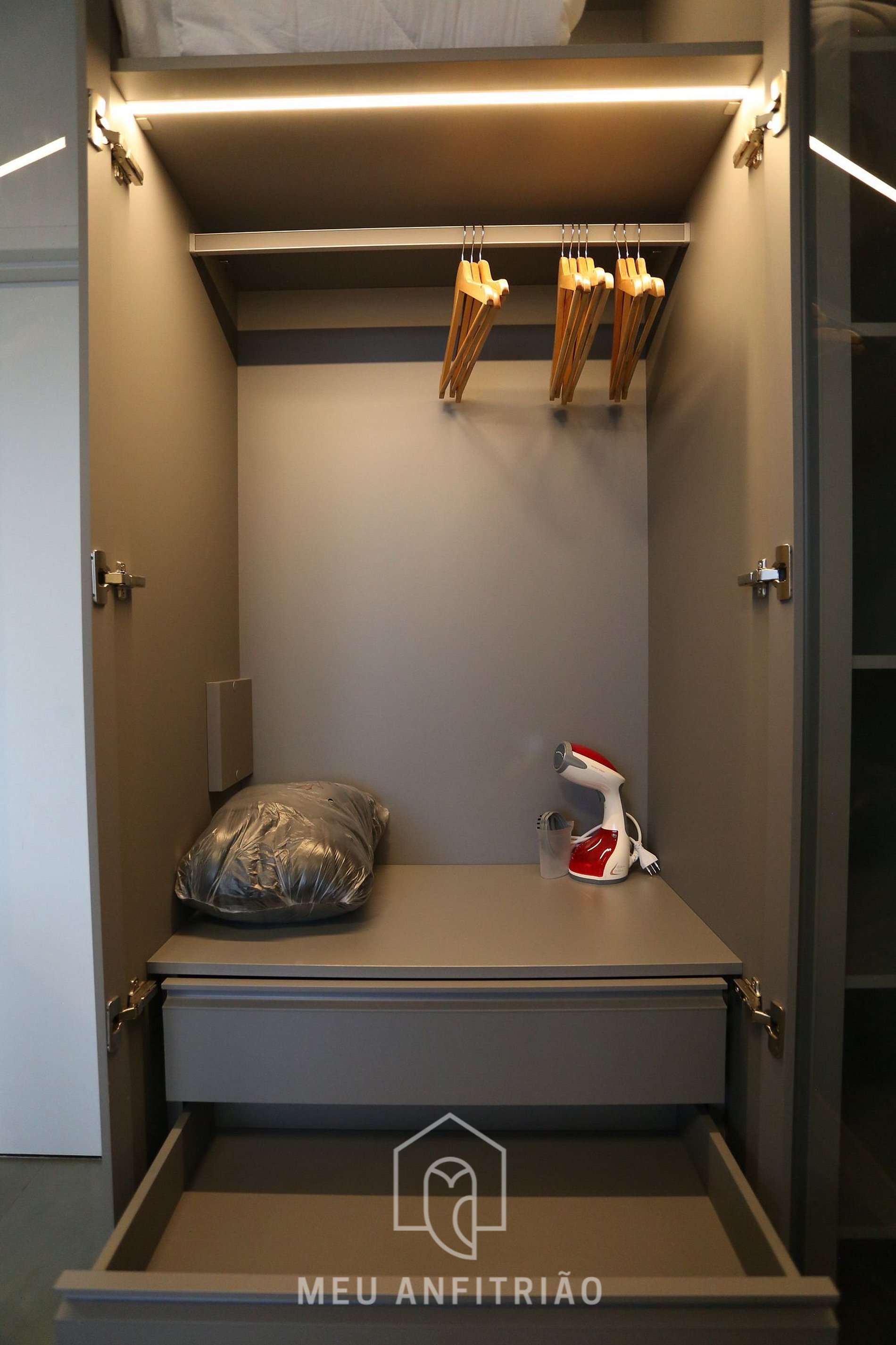 The studio accommodates up to 2 people in a double bed, with a large space of approximately 43m². The condominium has a complete leisure area and 24-hour doorman.