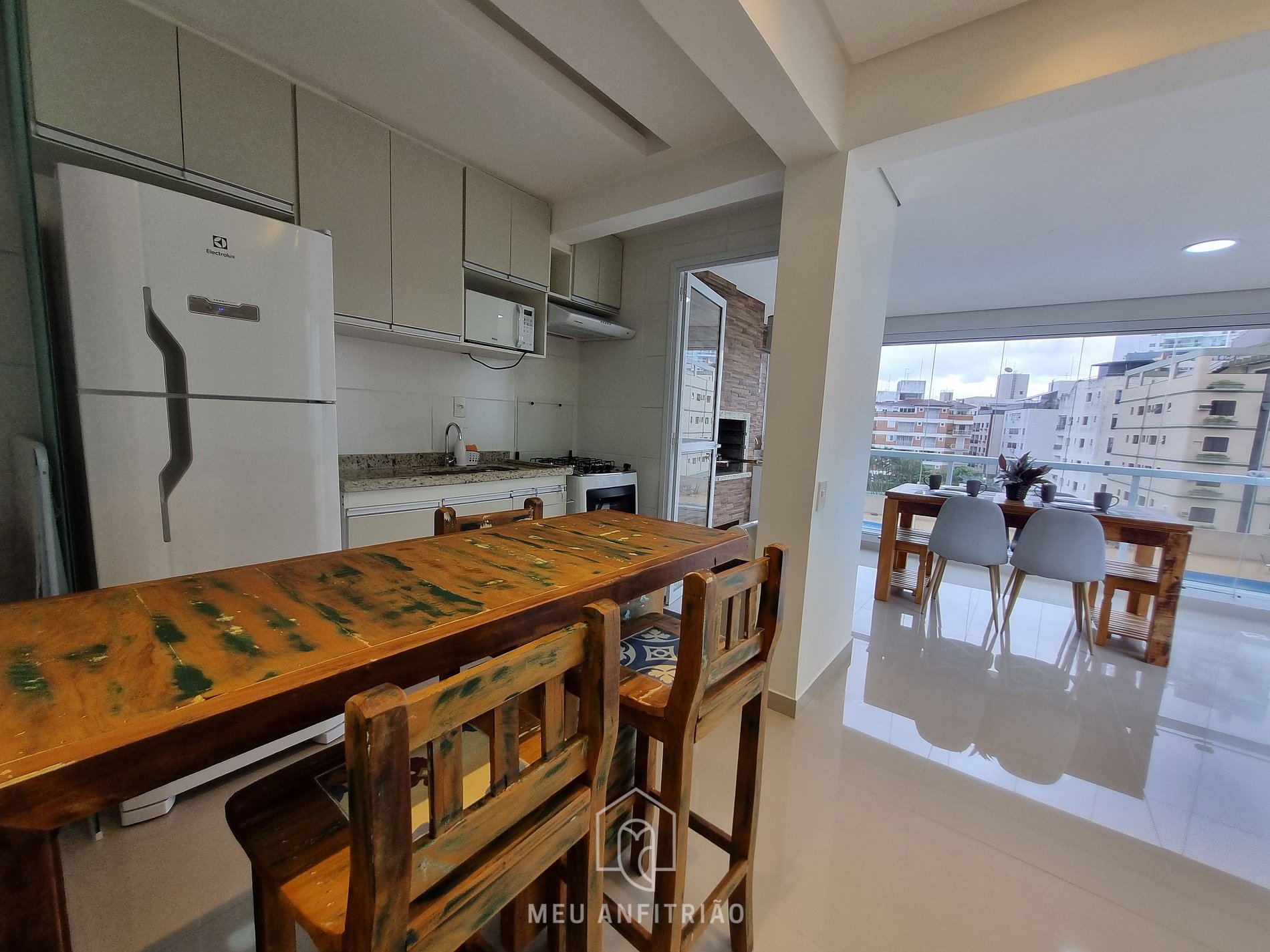 - Gourmet area: The apartment also features a gourmet area with a barbecue grill, dining table, and a view of the condominium's pool, as well as blinds on the windows to help control the brightness.