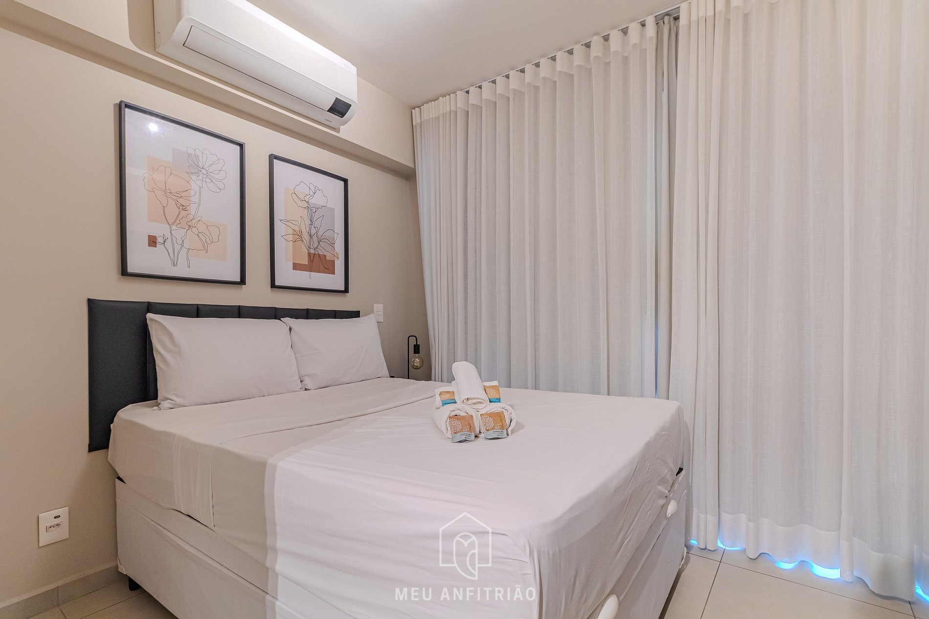 The studio measures 24m² and accommodates up to 2 people in a comfortable double bed. The condominium offers a fully equipped leisure area and 24-hour security, ensuring security and convenience.