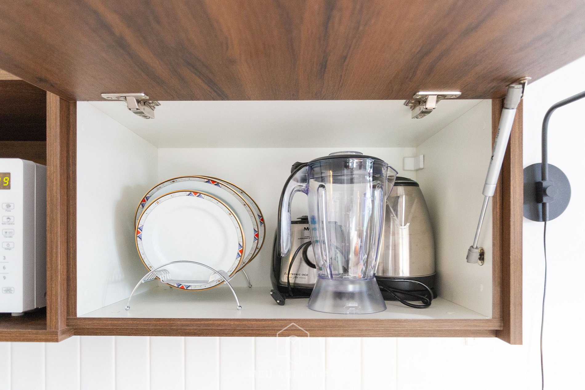 Upon entering the studio, guests will have access to the kitchen, which is equipped with the ideal appliances for a functional stay, such as a minibar, stovetop, microwave, sandwich maker, Nespresso coffee maker, electric kettle, blender, and more.