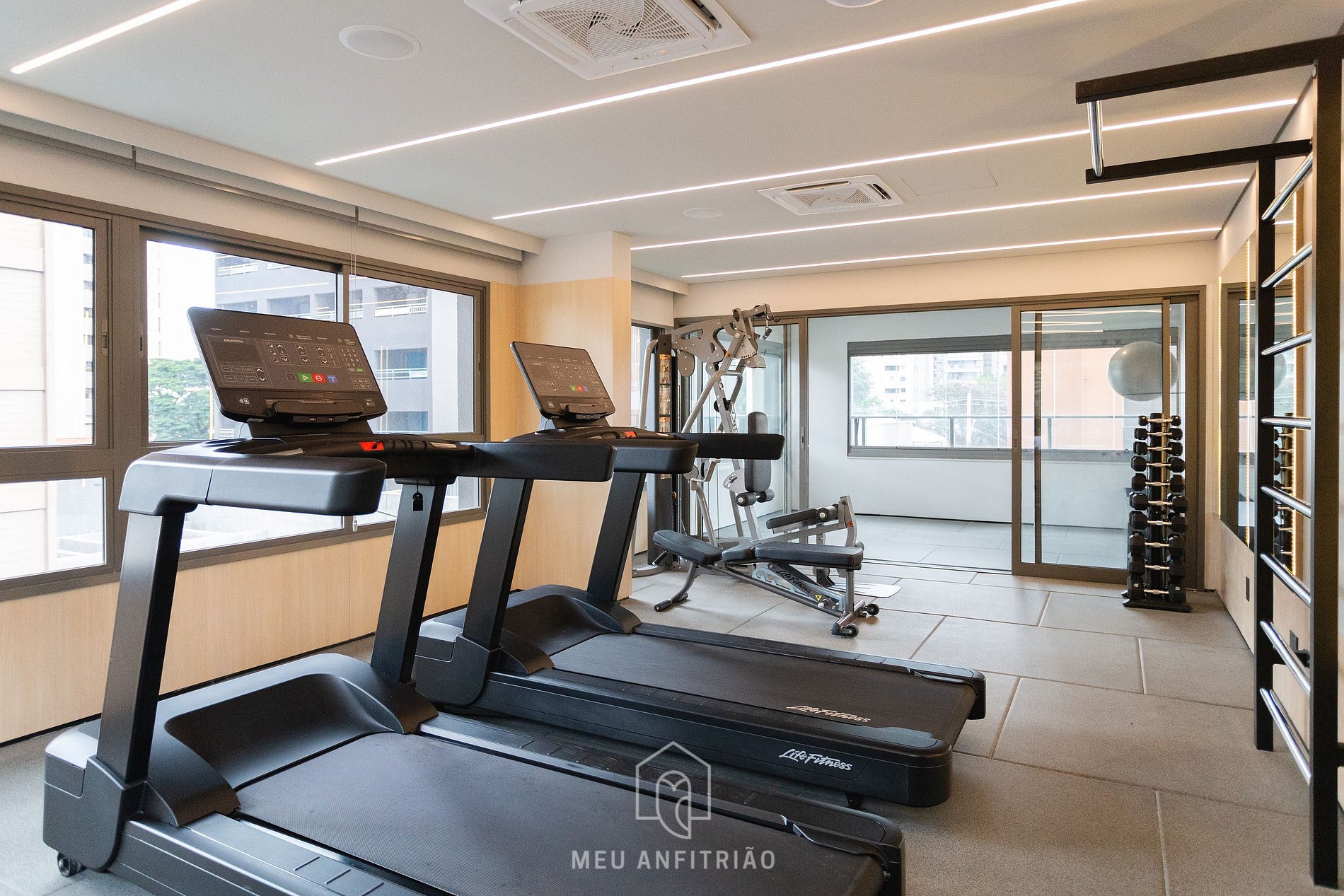 Guests will have access to the condominium's leisure facilities, including a swimming pool, gym, and coworking space. They will not be able to use the gourmet area.