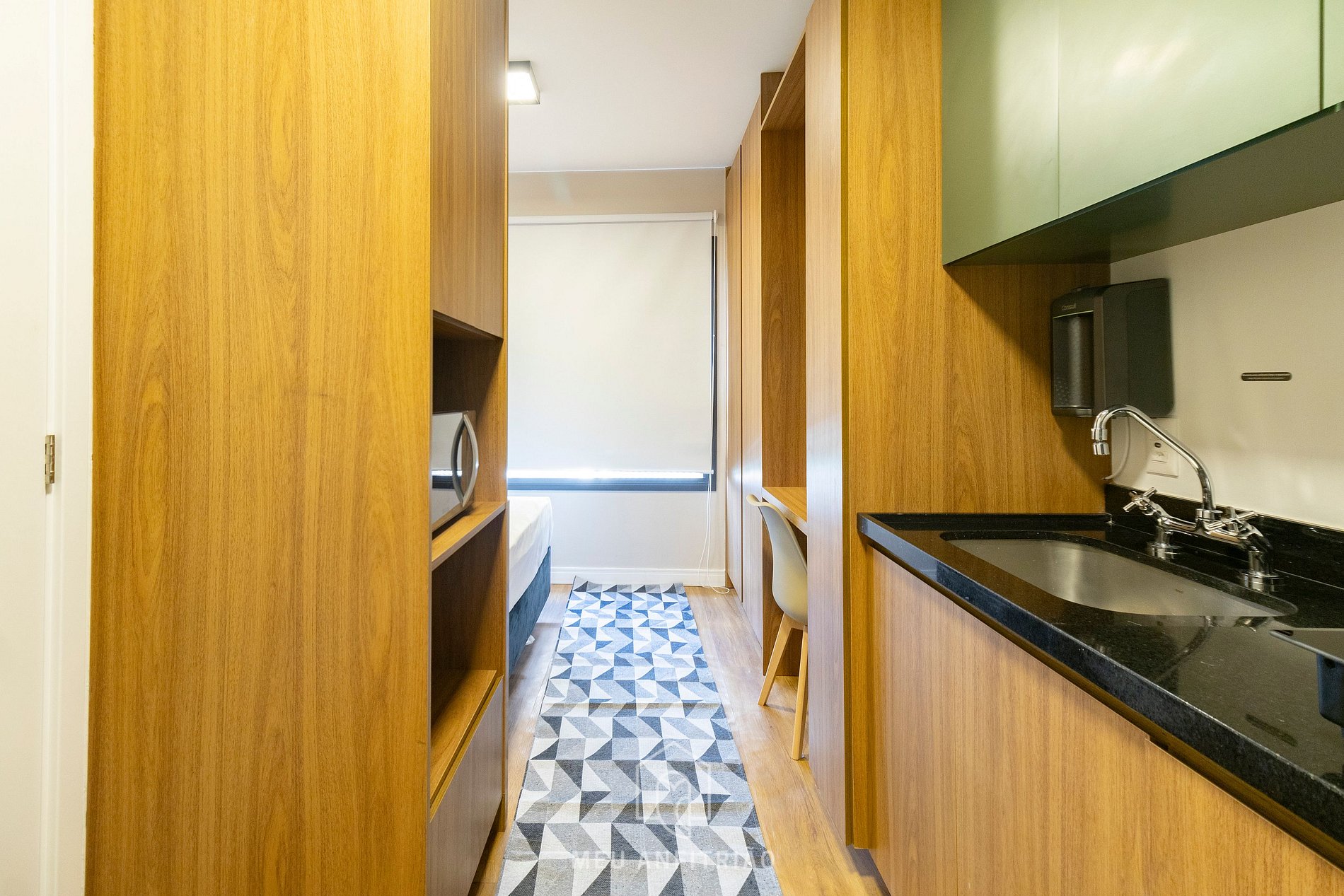 Ibirapuera Park Studios has fully equipped studios, offered in a condominium with a leisure area and 24-hour concierge.