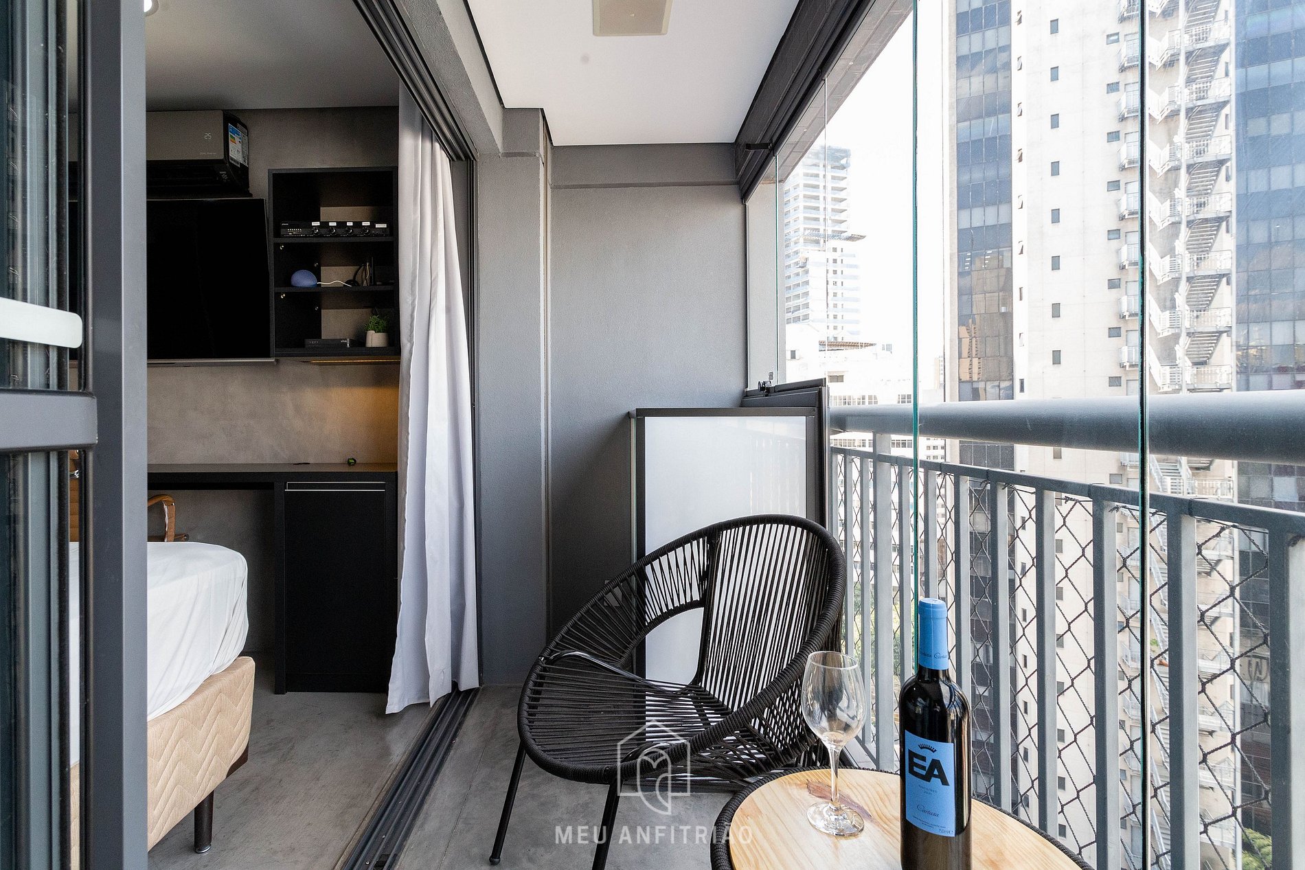 - Não há telas de proteção infantil no studio, mas a varanda é fechada por janelas de vidro, garantindo maior segurança no local.