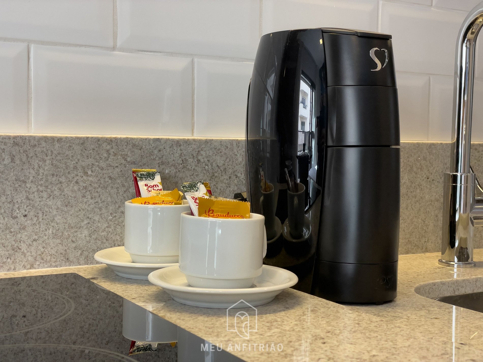 - Cozinha completa com os utensílios e eletrodomésticos necessários para uma estadia prática, como fogão cooktop, geladeira, filtro d’água, chaleira elétrica, liquidificador, sanduicheira, air fryer, cafeteira de cápsulas 3 Corações, entre outros.