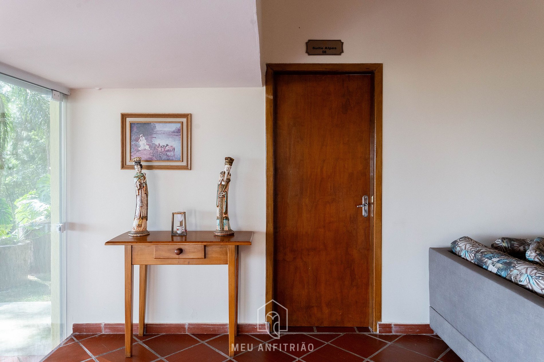 - Os hóspedes terão acesso a todas dependências da pousada além de sua suíte. O espaço dispõe piscina, salão de jogos, gramado, jardim, adega, salas de TV, sala de jantar, mesa de sinuca, área para piquenique, cozinha compartilhada e lavabos.