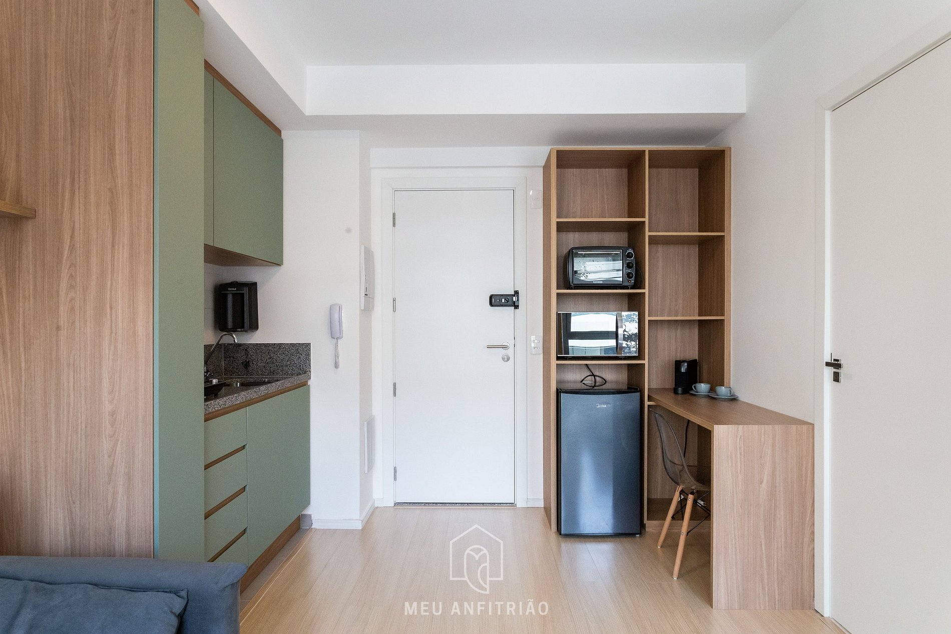 Na cozinha dispomos de utensílios necessários para uma estadia prática, além de banheiro, armário, sofá, escrivaninha para home office, TV Smart e Nespresso. Também dispomos de ar-condicionado (frio e quente) e WI-FI de alta velocidade.