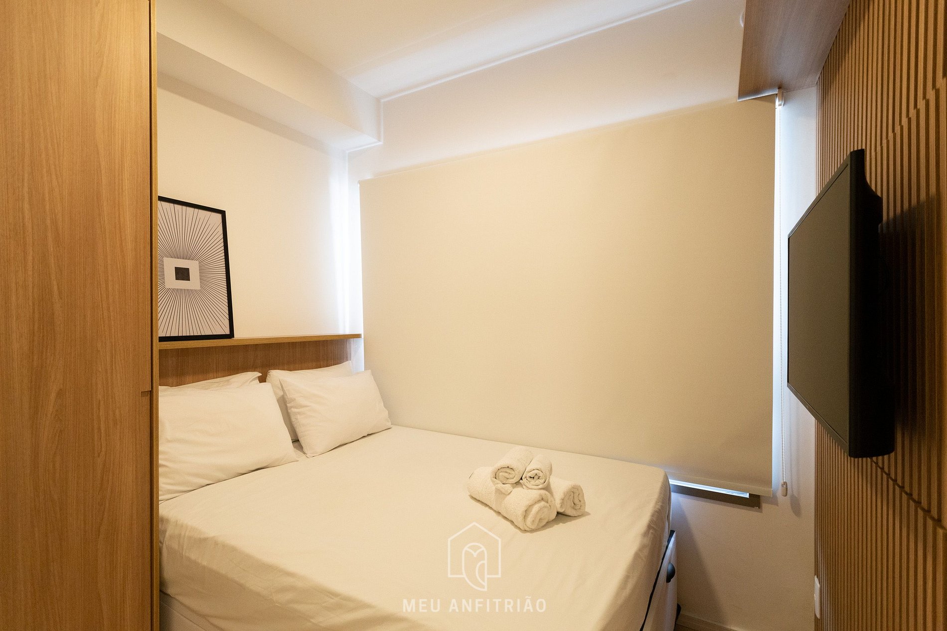 Para um ambiente mais aconchegante, contamos com cortina blackout no quarto.