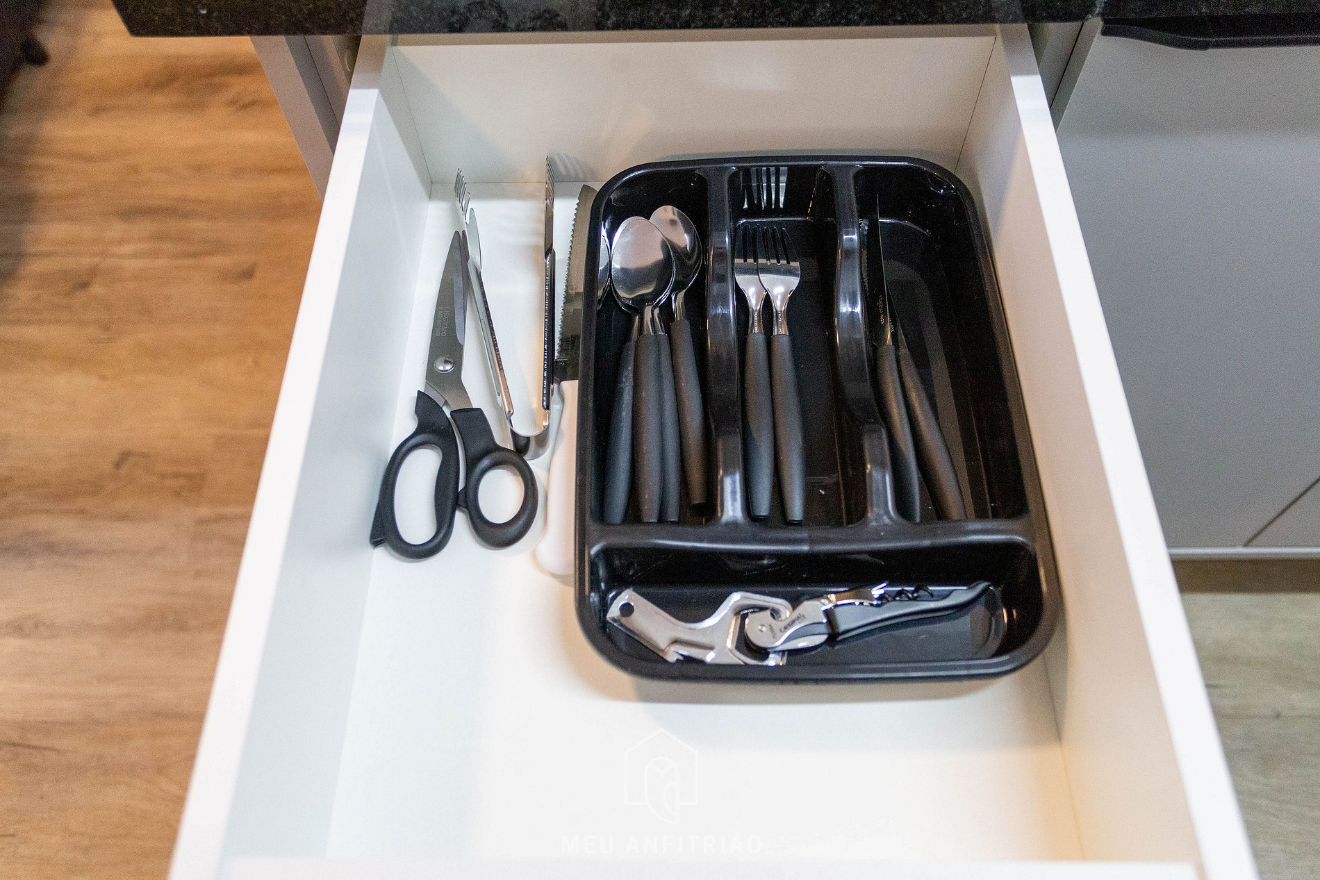 Al ingresar, los huéspedes tendrán acceso a la cocina, la cual cuenta con los utensilios necesarios para una estadía práctica como refrigerador, anafe, microondas, licuadora, cafetera eléctrica, filtro de agua, sandwichera, entre otros. Un balcón con vista a la ciudad, contraventanas y ventanas de vidrio dividen los espacios.