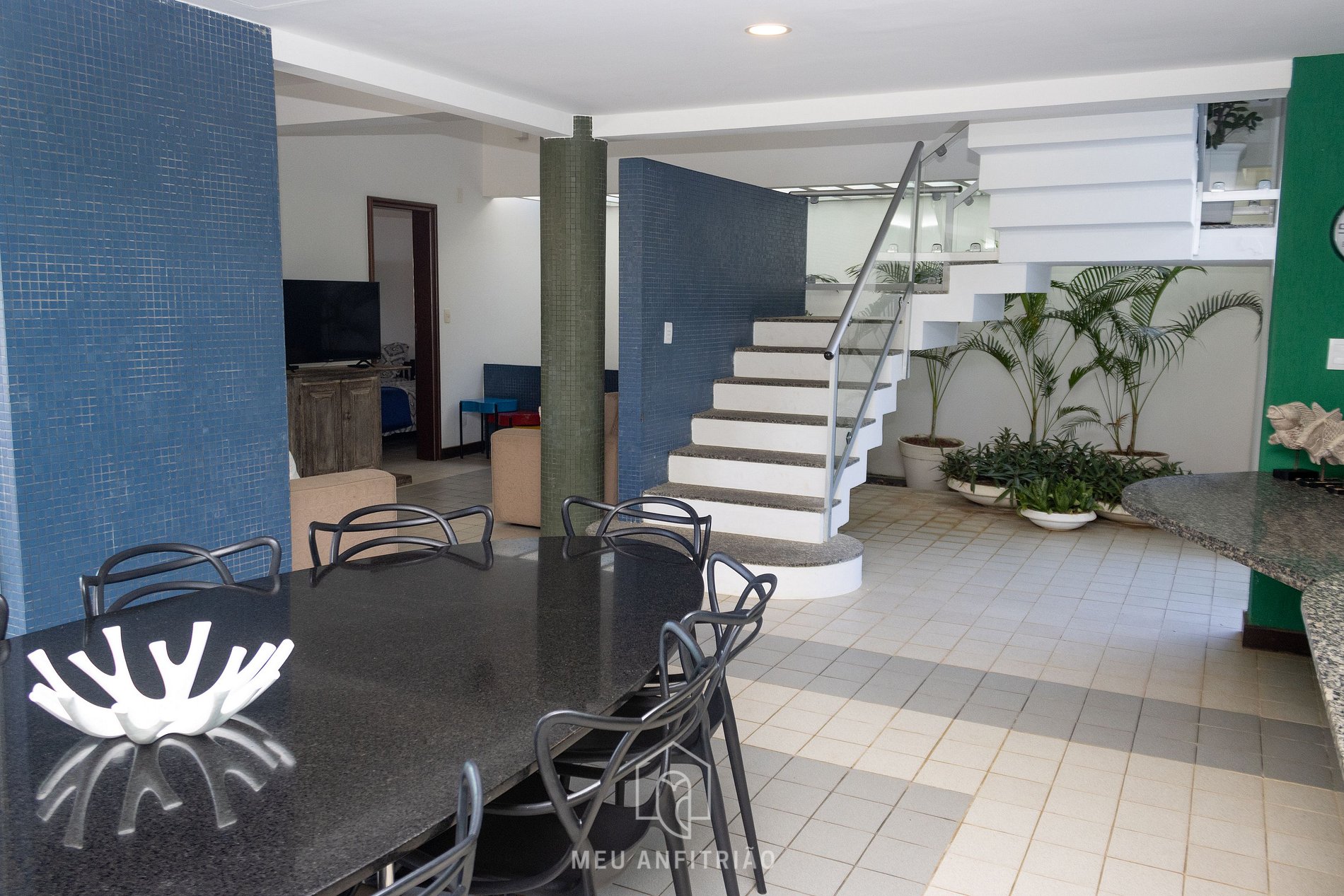 Ao chegar, o hóspede terá acesso à sala de estar, que possui sofás, poltronas e mesa de centro. Em seguida, temos a sala de jantar, com mesa e cadeiras para refeições, e o lounge, que dispõe de uma TV Smart e sofás. A cozinha conta com os utensílios necessários para uma estadia prática, como geladeira, fogão, forno elétrico, sanduicheira, cafeteira, micro-ondas, liquidificador, filtro d'água entre outros. Além das 2 geladeiras temos 1 freezer horizontal grande e cooler que pode utilizar gelar bebidas também.
