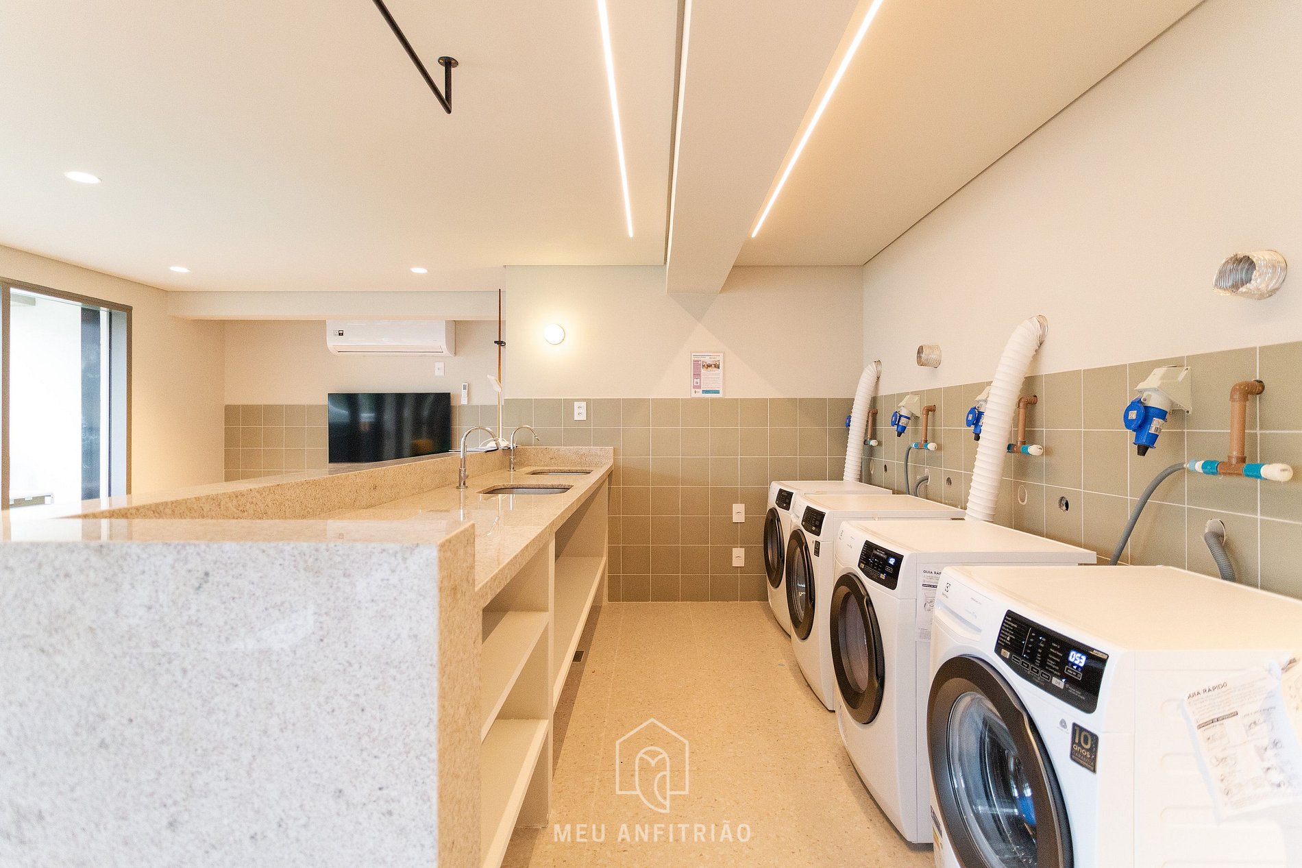 - O condomínio dispõe de lavanderia compartilhada gratuita. É necessário que o hóspede leve seu próprio sabão líquido para utilizar.
