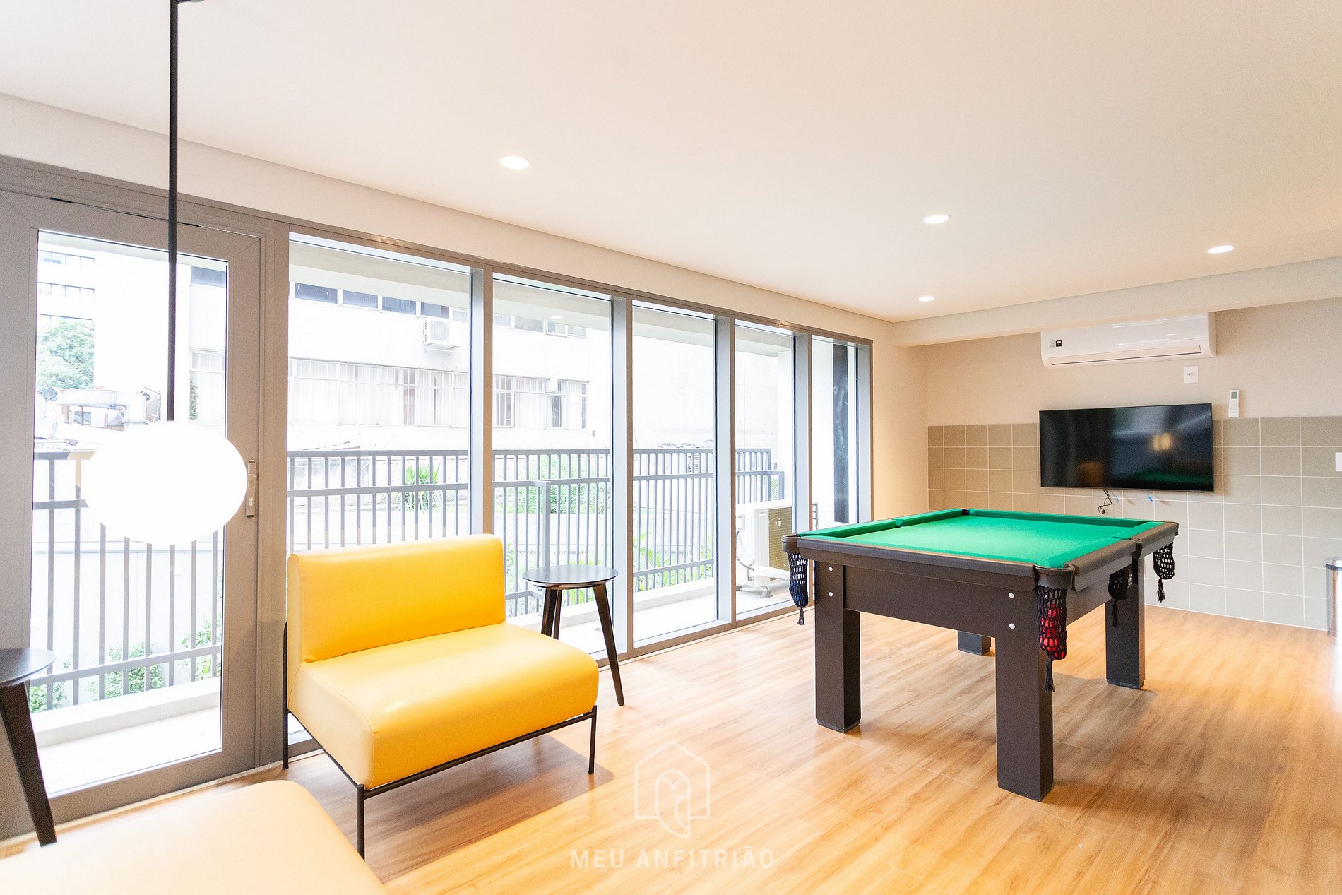 Os hóspedes terão acesso às dependências de lazer do condomínio, incluindo a piscina, academia, espaço para coworking, sala de jogos e bicicletário. Não terá acesso ao salão de festas.