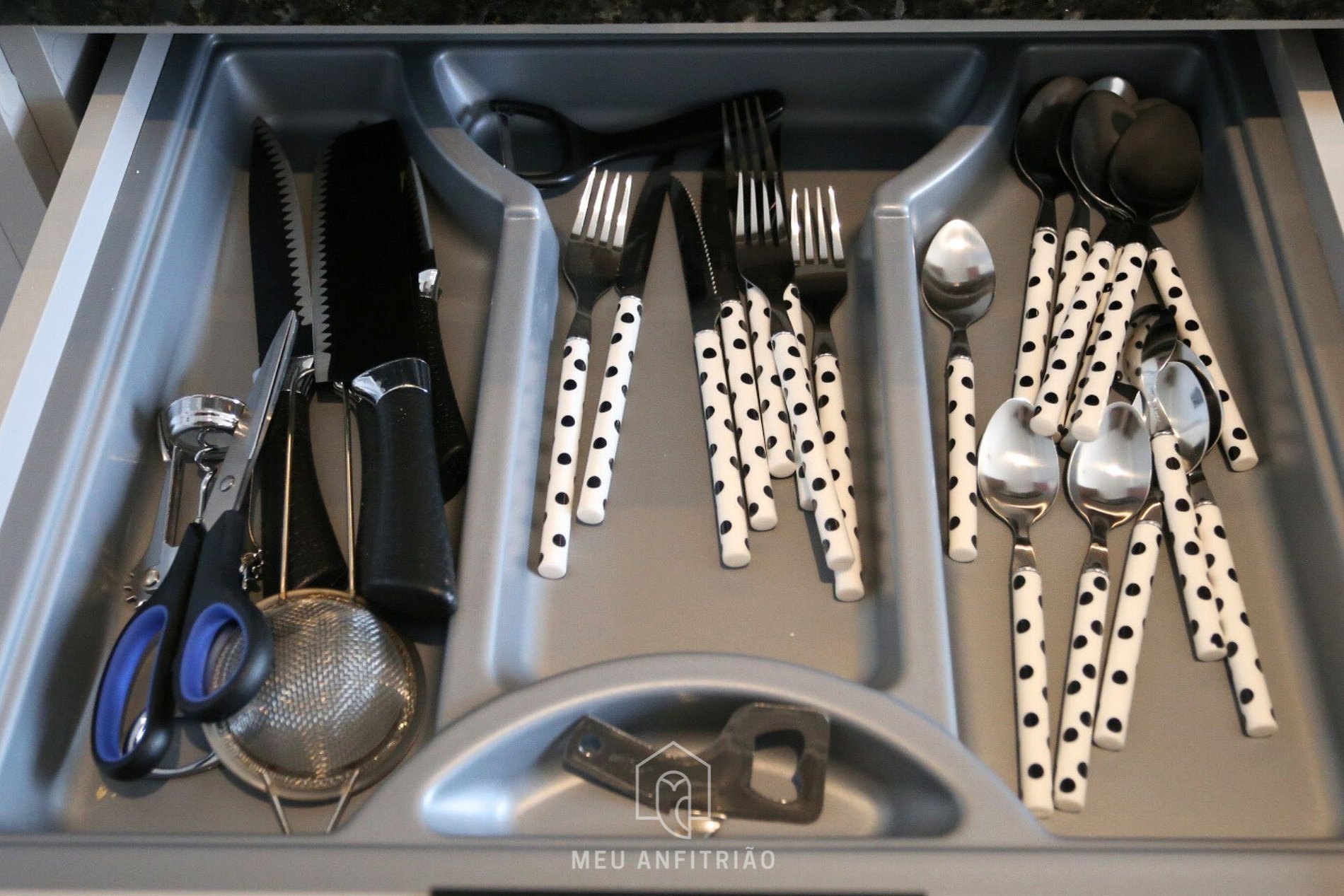 Assim que entrar, o hóspede terá acesso à cozinha, que conta com os utensílios ideais para uma estadia prática, como frigobar, fogão cooktop, micro-ondas, sanduicheira, liquidificador, cafeteira e chaleira elétrica entre outros.