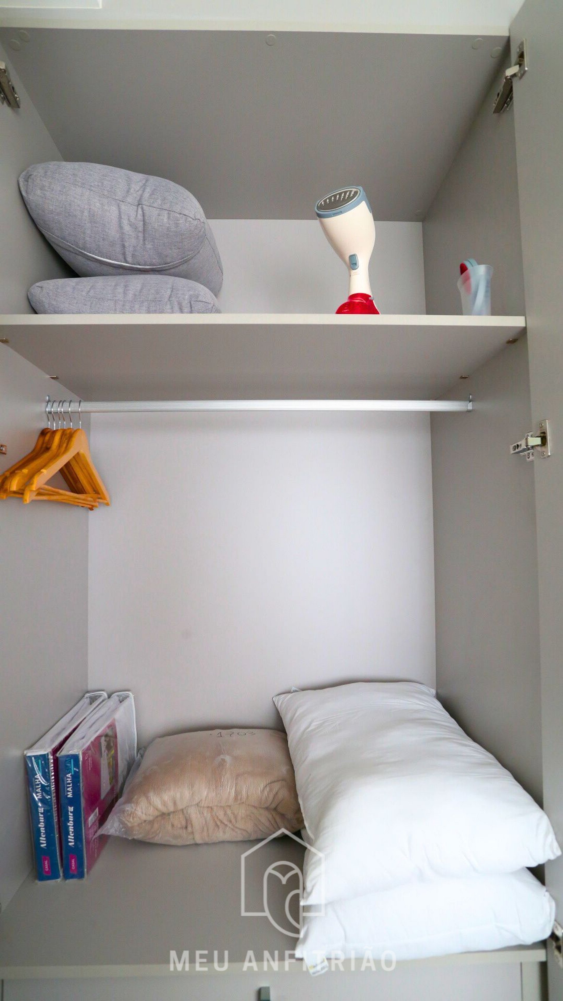 O apartamento acomoda até 2 pessoas em uma cama de casal e conta com 28m². O condomínio possui área de lazer completa e portaria presencial 24h.