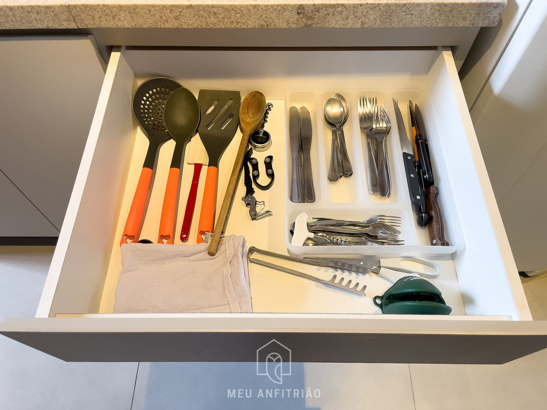 - Uma cozinha completa com os utensílios necessários para uma estadia prática e confortável, como geladeira, fogão cooktop, micro-ondas, torradeira, cafeteira elétrica, forno elétrico entre outros.
