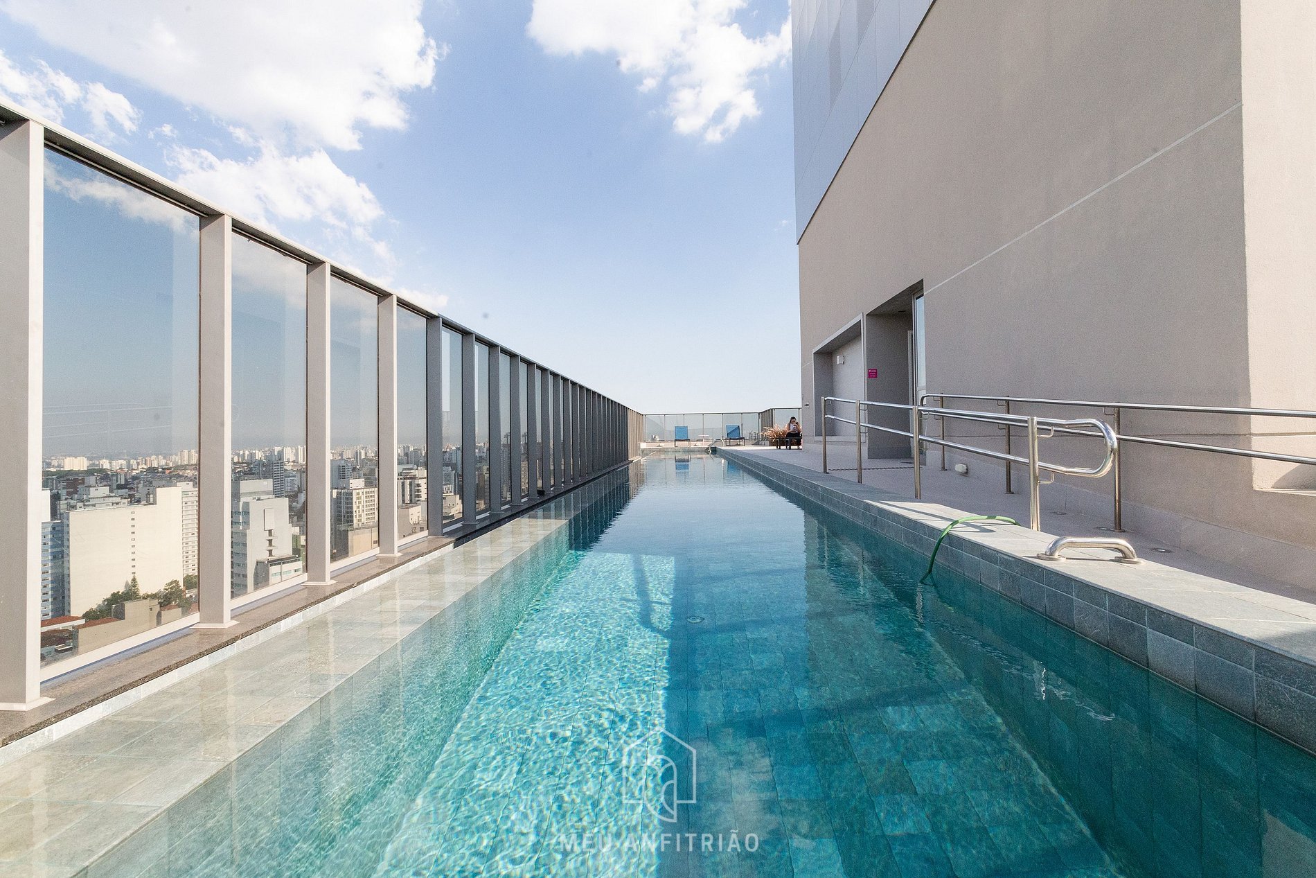 O hóspede terá acesso às áreas de lazer do condomínio, incluindo piscina, solário, rooftop, espaço de coworking, academia, máquina de chopp, minimercado, bicicletário e spa. O acesso ao salão de festas não está disponível.