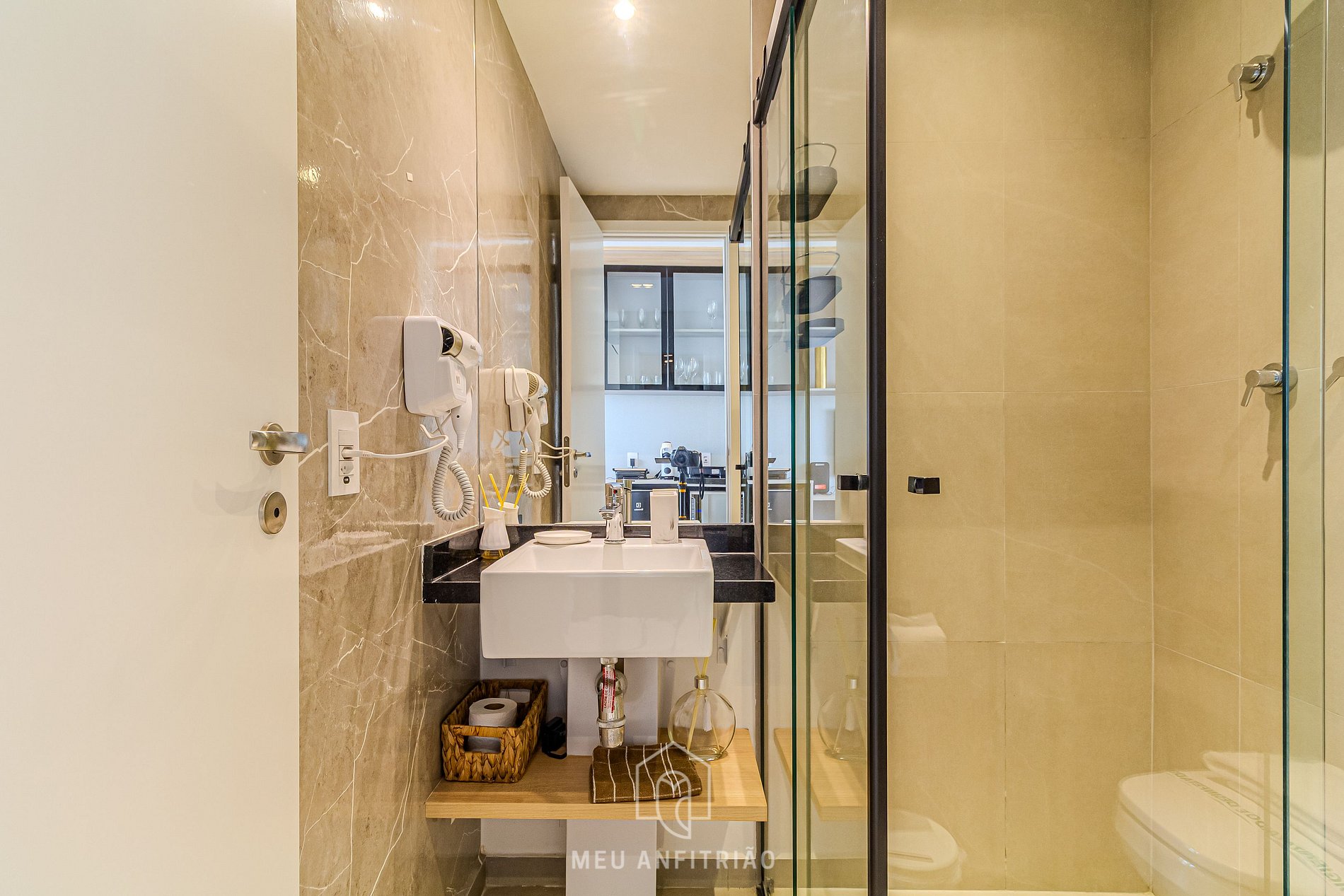 Também contamos com ar-condicionado, cortinas blackout, ferro de passar, WI-FI de alta velocidade, TV Smart e banheiro com chuveiro a gás e secador de cabelos.