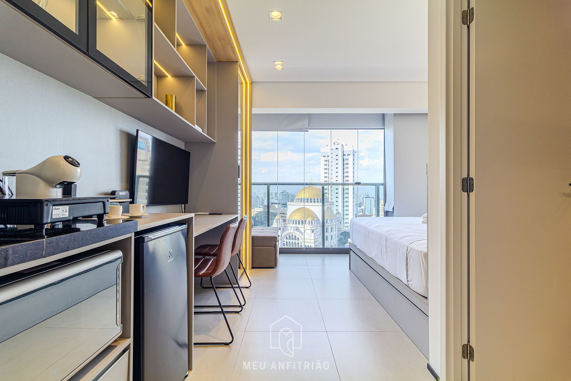 O ON Paulista oferece studios completos em um condomínio com portaria presencial 24h e área de lazer completa.