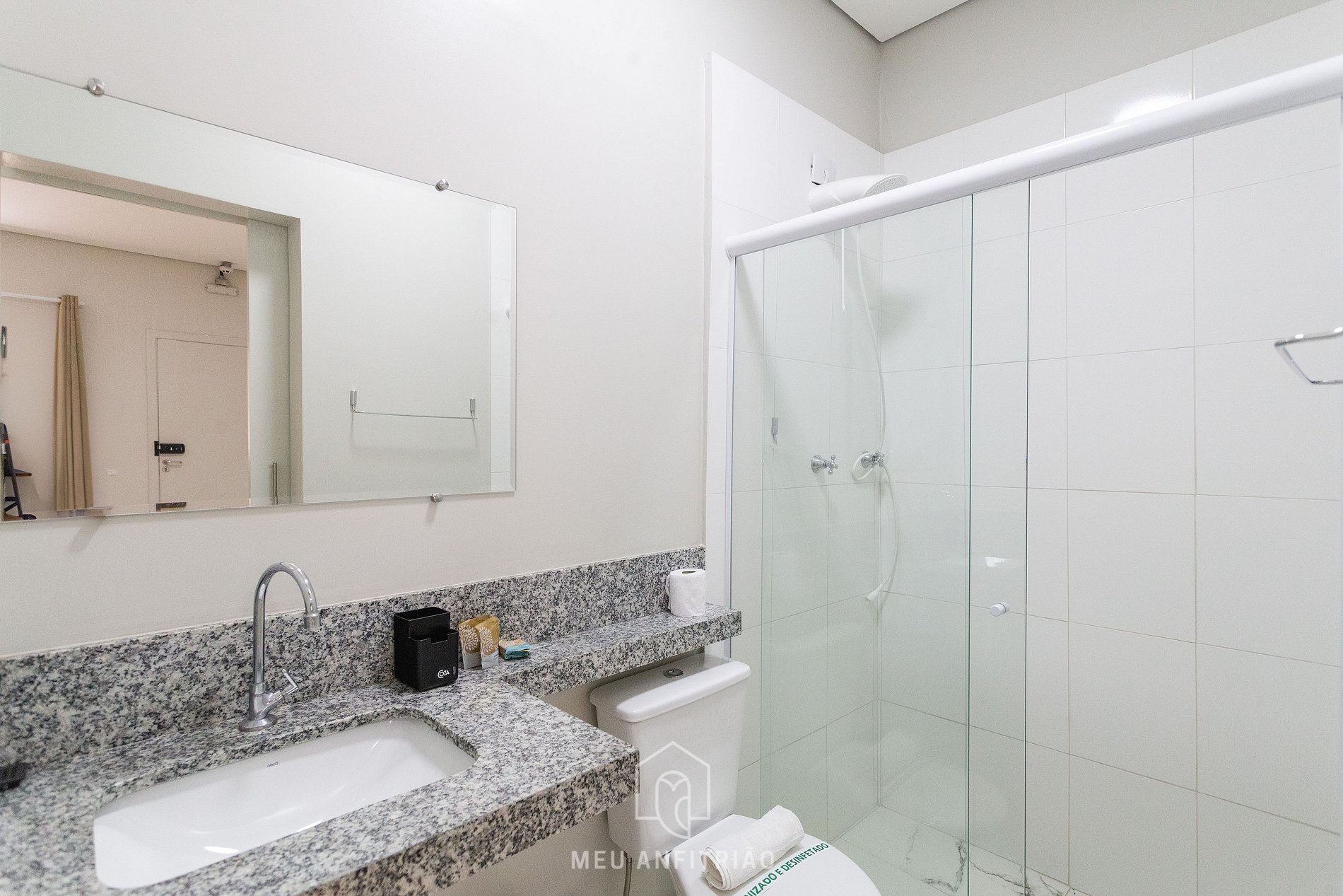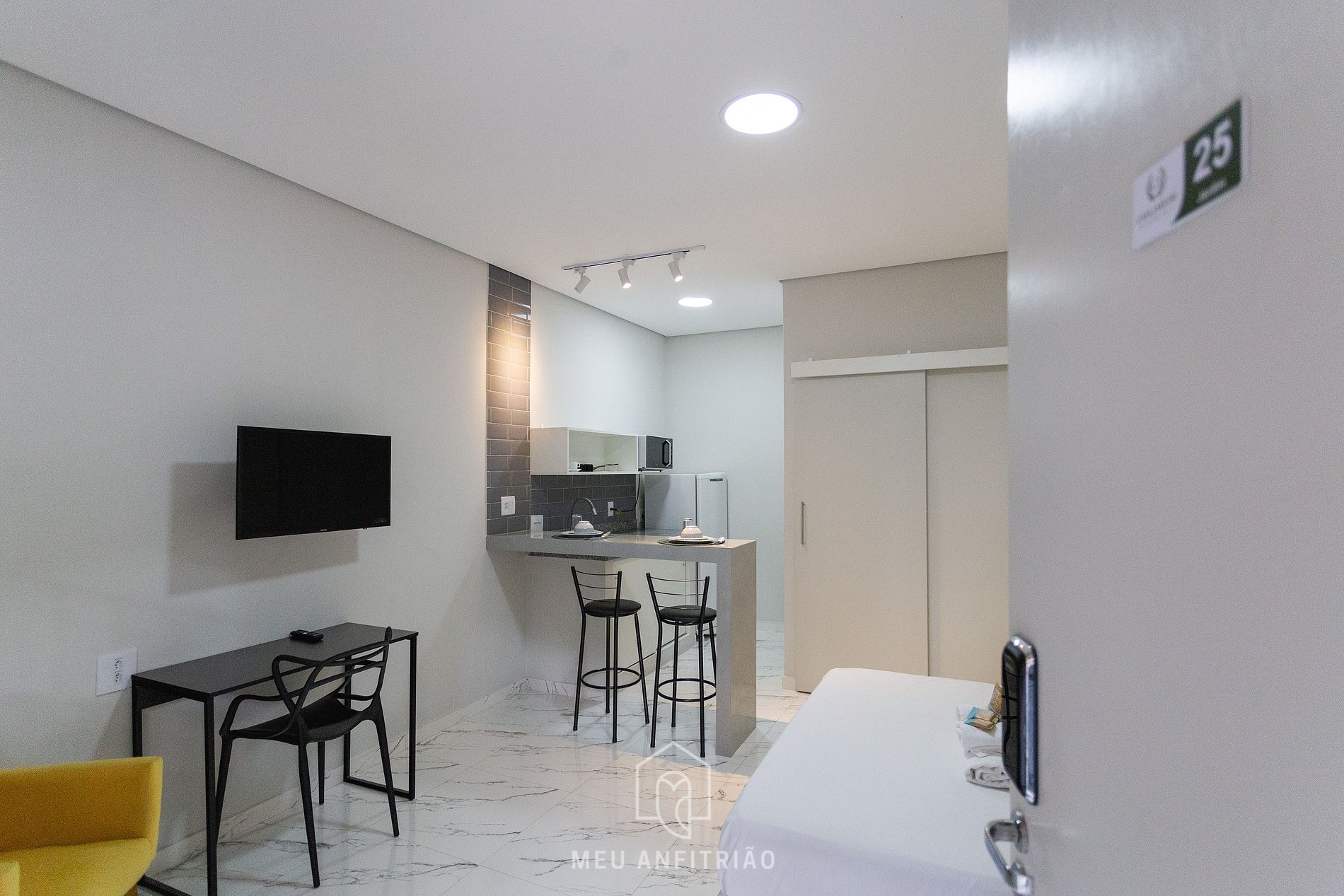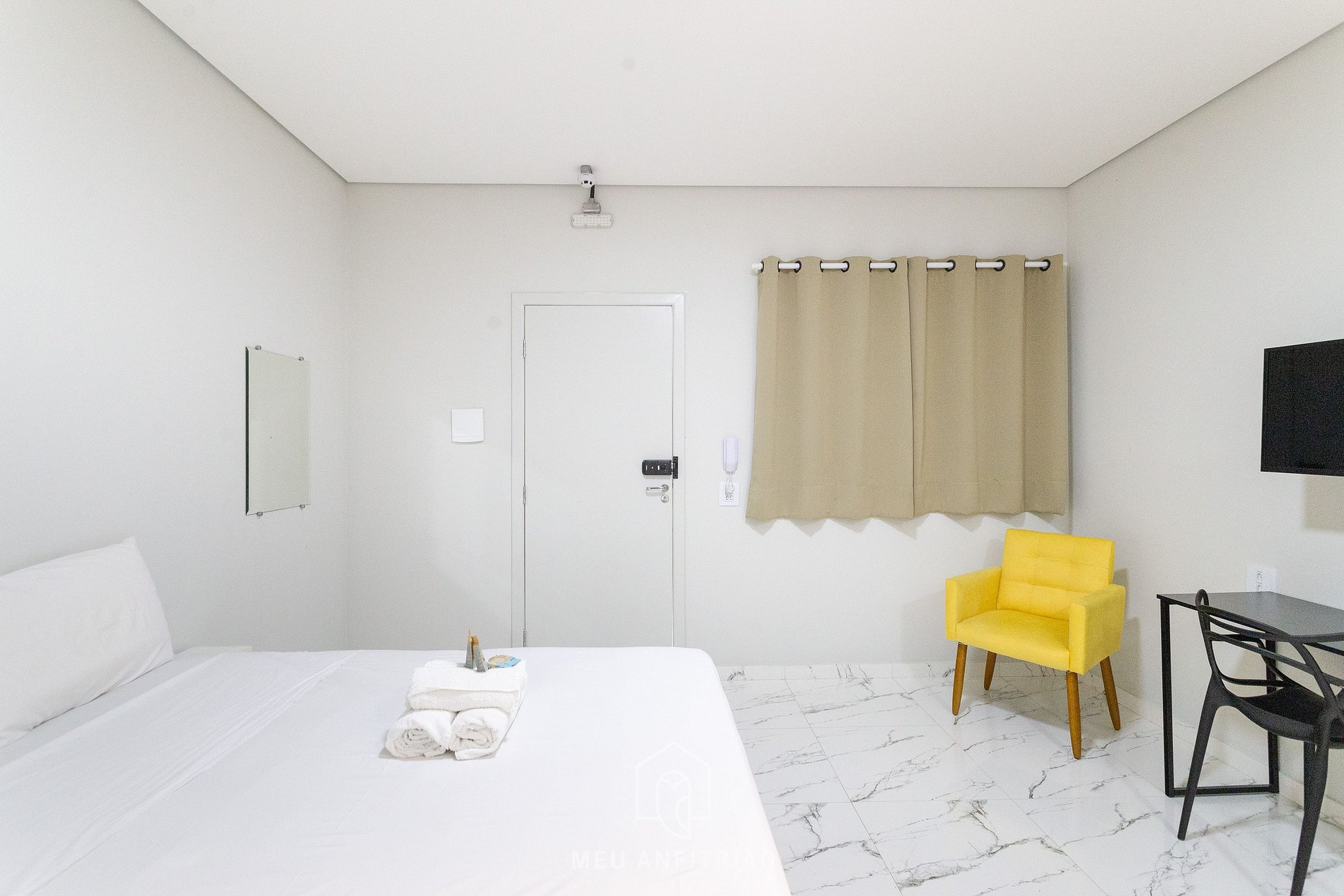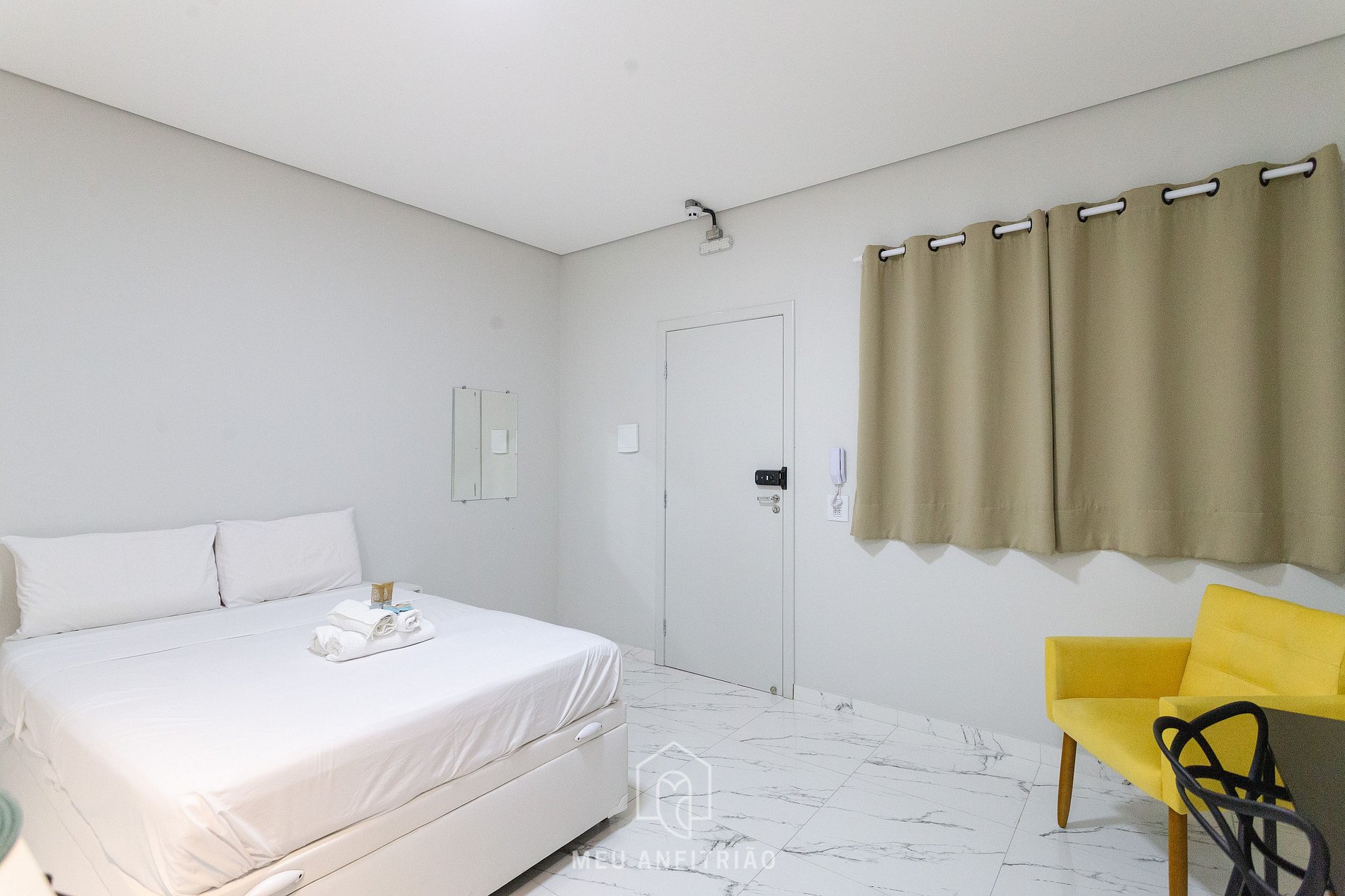 Também disponibilizamos TV Smart, guarda-roupas, mesa com cadeiras para refeições ou home office, cortinas, além de um banheiro com chuveiro elétrico.