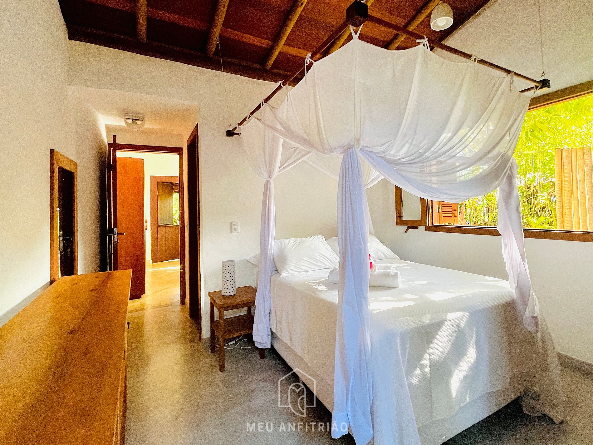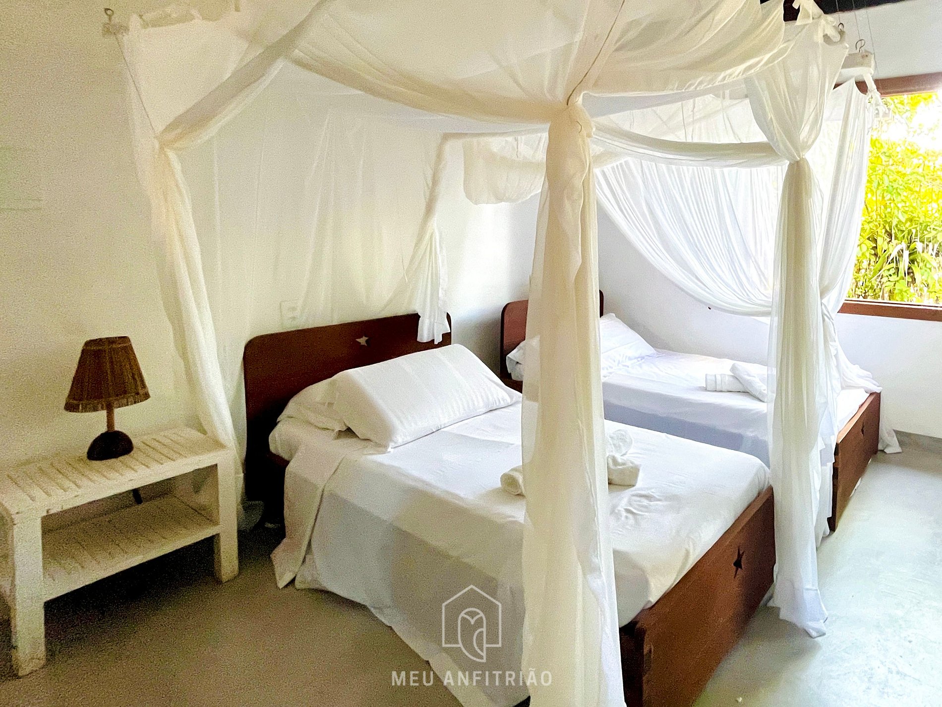 Todas as suítes têm ar-condicionado, mosquiteiro e, no banheiro, box de blindex. Além disso, o wi-fi de alta velocidade funciona na casa toda.