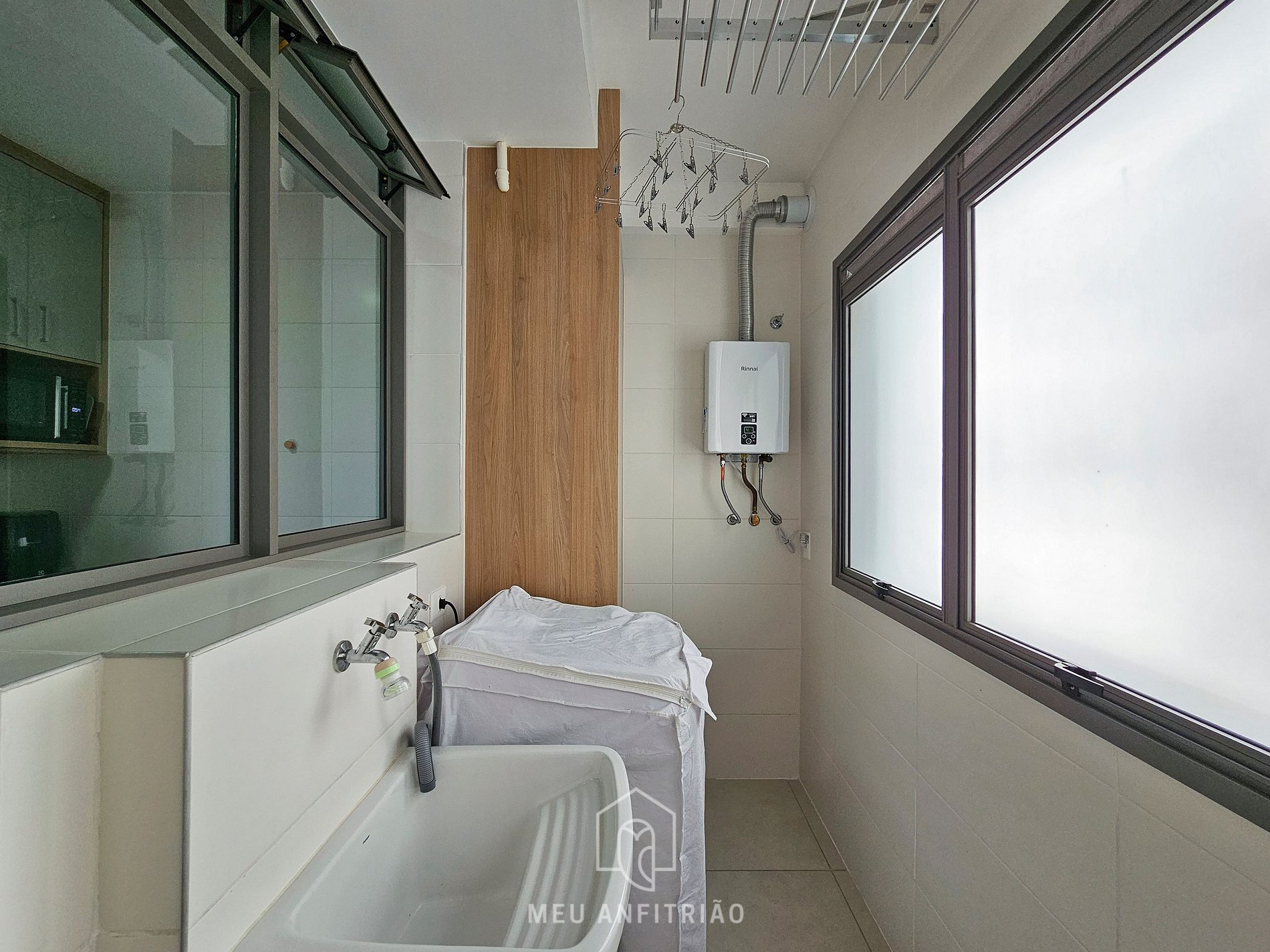 - O condomínio não dispõe de lavanderia compartilhada, mas contamos com máquina de lavar e varal no apartamento. É necessário levar seus próprios produtos de limpeza caso deseje utilizá-la.