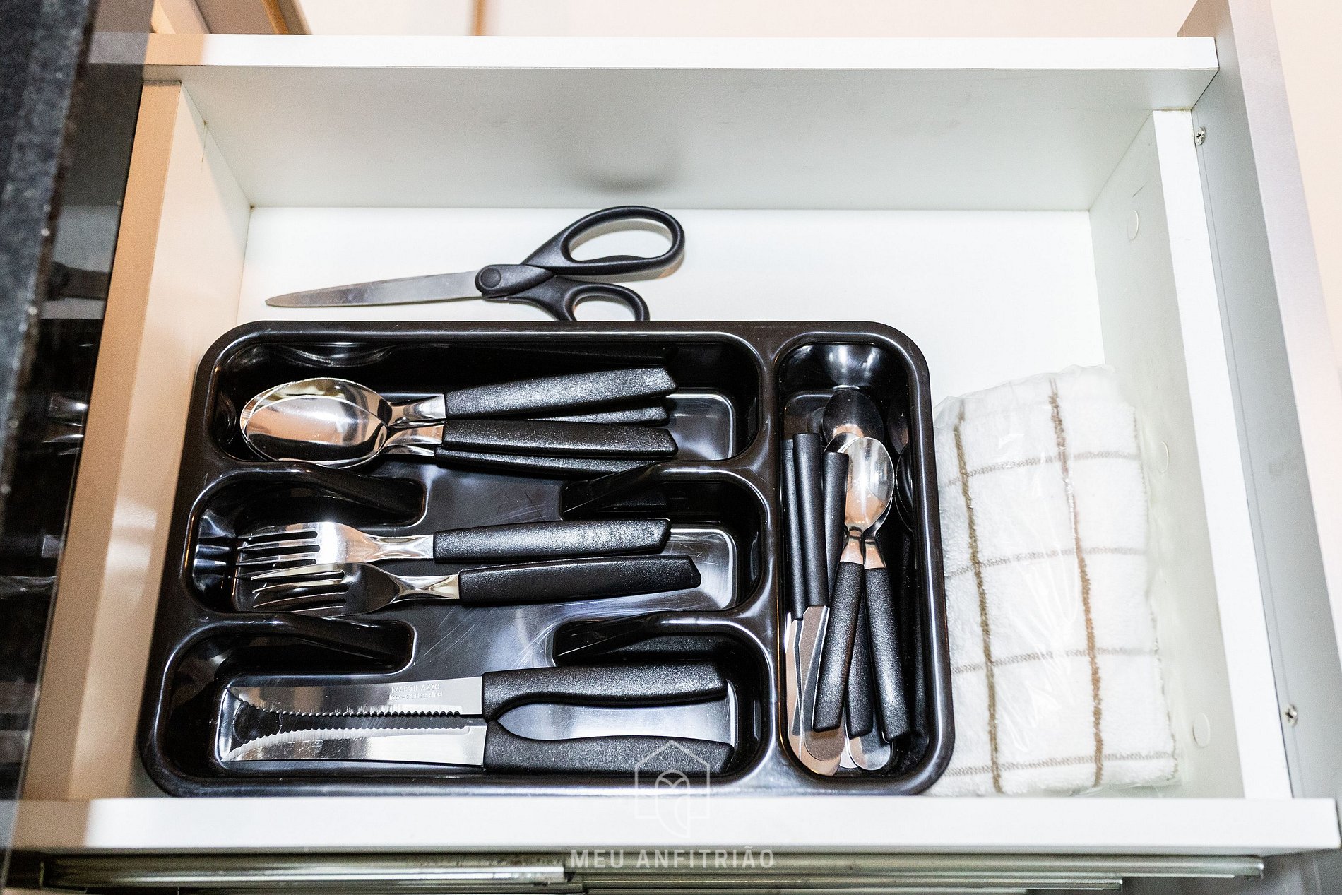 - Cozinha equipada com fogão cooktop, geladeira, micro-ondas, mixer, cafeteira e chaleira elétricas, filtro d’água natural e gelada, sanduicheira e mais outros itens funcionais para uma estádia confortável.