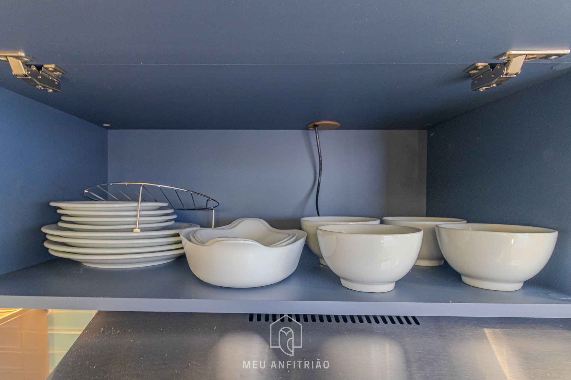 - Cozinha com fogão cooktop 2 bocas, geladeira, micro-ondas, filtro d’água, cafeteira de cápsulas Nespresso Essenza Mini, sanduicheira, mixer, chaleira elétrica e muitos outros utensílios para tornar a estadia aconchegante.