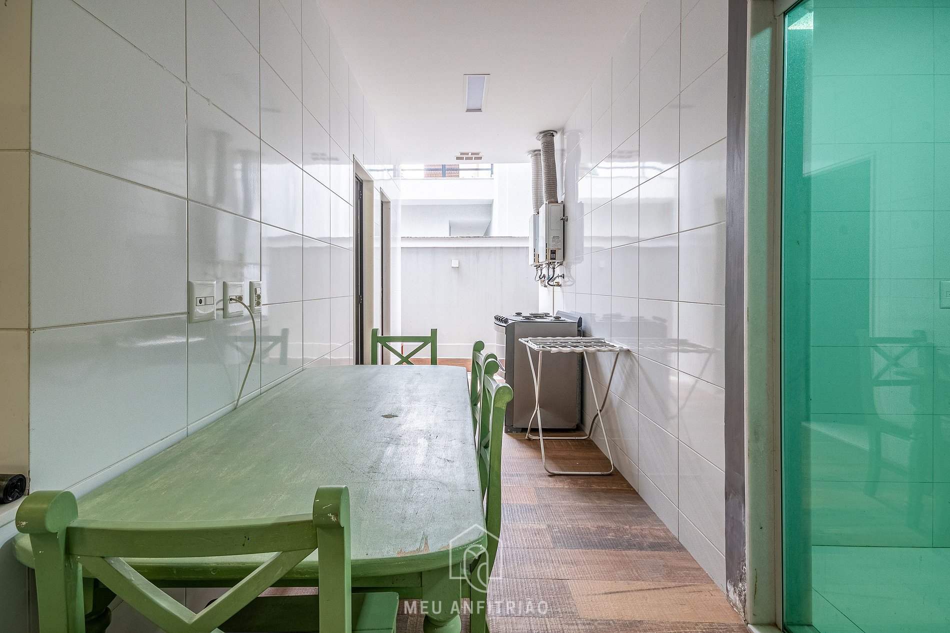 - Cozinha com os utensílios necessários para uma estadia prática, como fogão cooktop, forno, coifa, geladeira, filtro d’água entre outros, além de ar-condicionado. Também contamos com uma área de serviço com máquinas de lavar e secar e varal de chão.