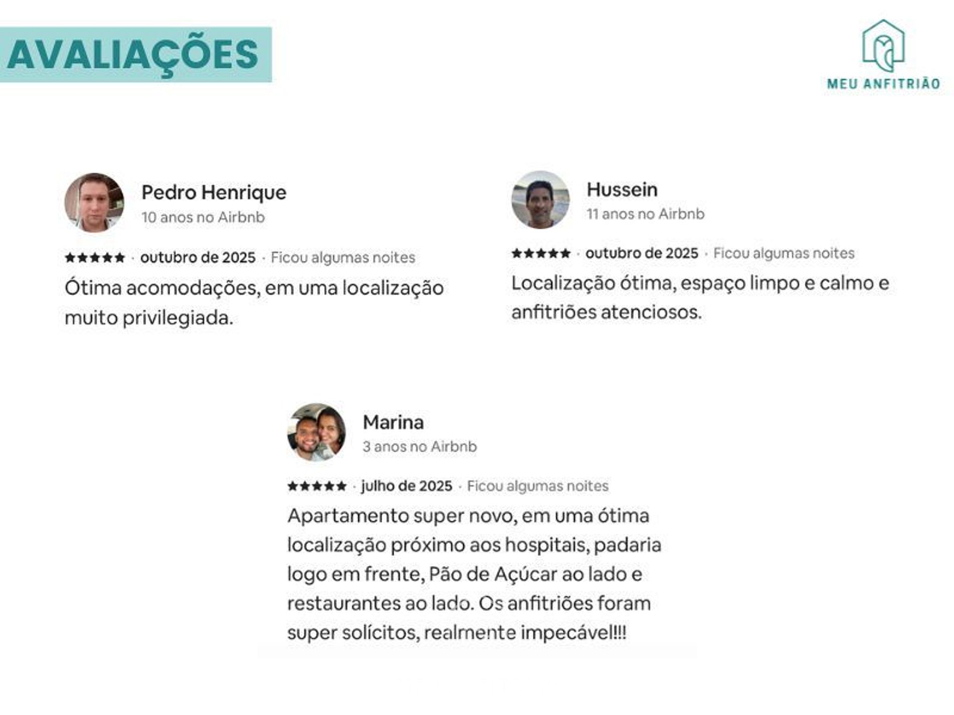 Apartamento conforme fotos. Tudo muito novo. Adorei o ar condicionado por ter a função Windows free, super confortável para dormir. Cama muito confortável e com todos itens de cozinha para uma ótima estadia. Chuveiro muito bom. No prédio há um mercadinho que facilita bastante. Padaria fica na frente do prédio e há um Pão de Açúcar uns 50 metros. Anfitrião deu todo o suporte desde início até a minha saída. Super recomendo.