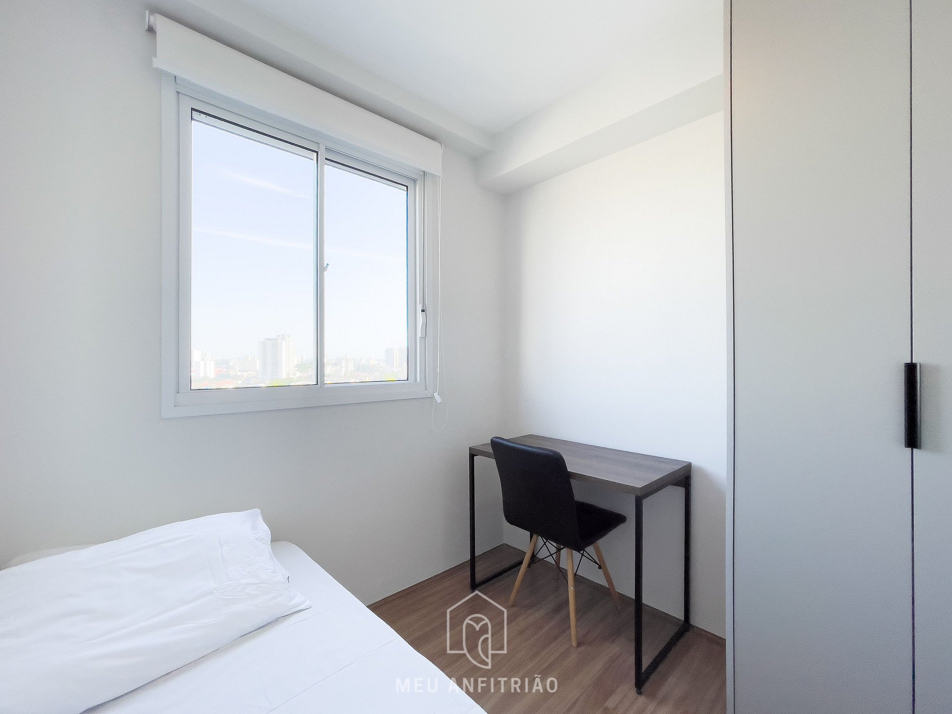 - O primeiro quarto acompanha uma cama de solteiro, mesa para trabalho, guarda-roupa e persiana blackout.