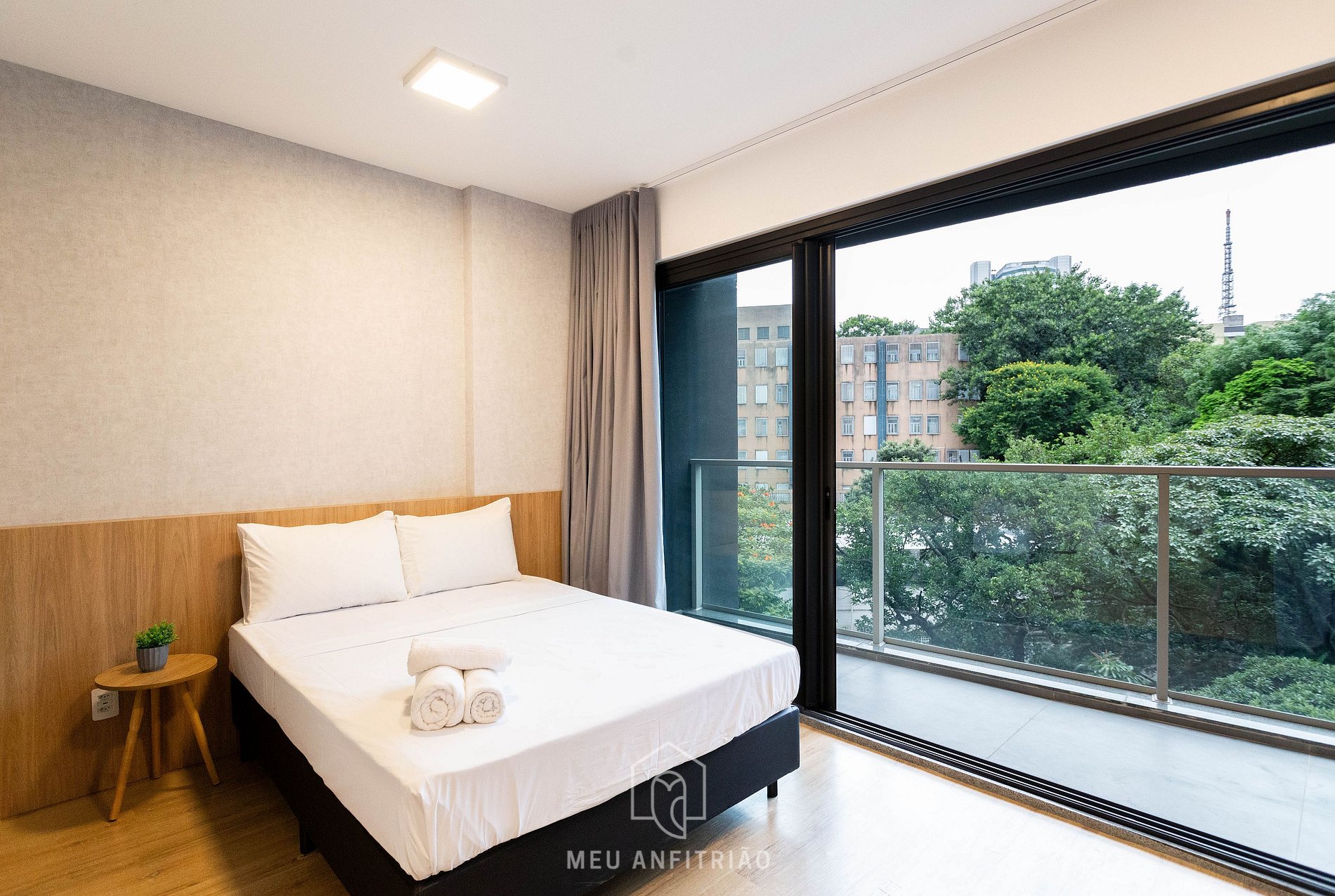 Em um condomínio com área de lazer completa e portaria presencial 24h, nosso studio de 27m² acomoda até 2 pessoas. Mesclando conforto, ótima localização e lazer, é a opção ideal para quem busca uma estadia próximo à Rua Oscar Freire.