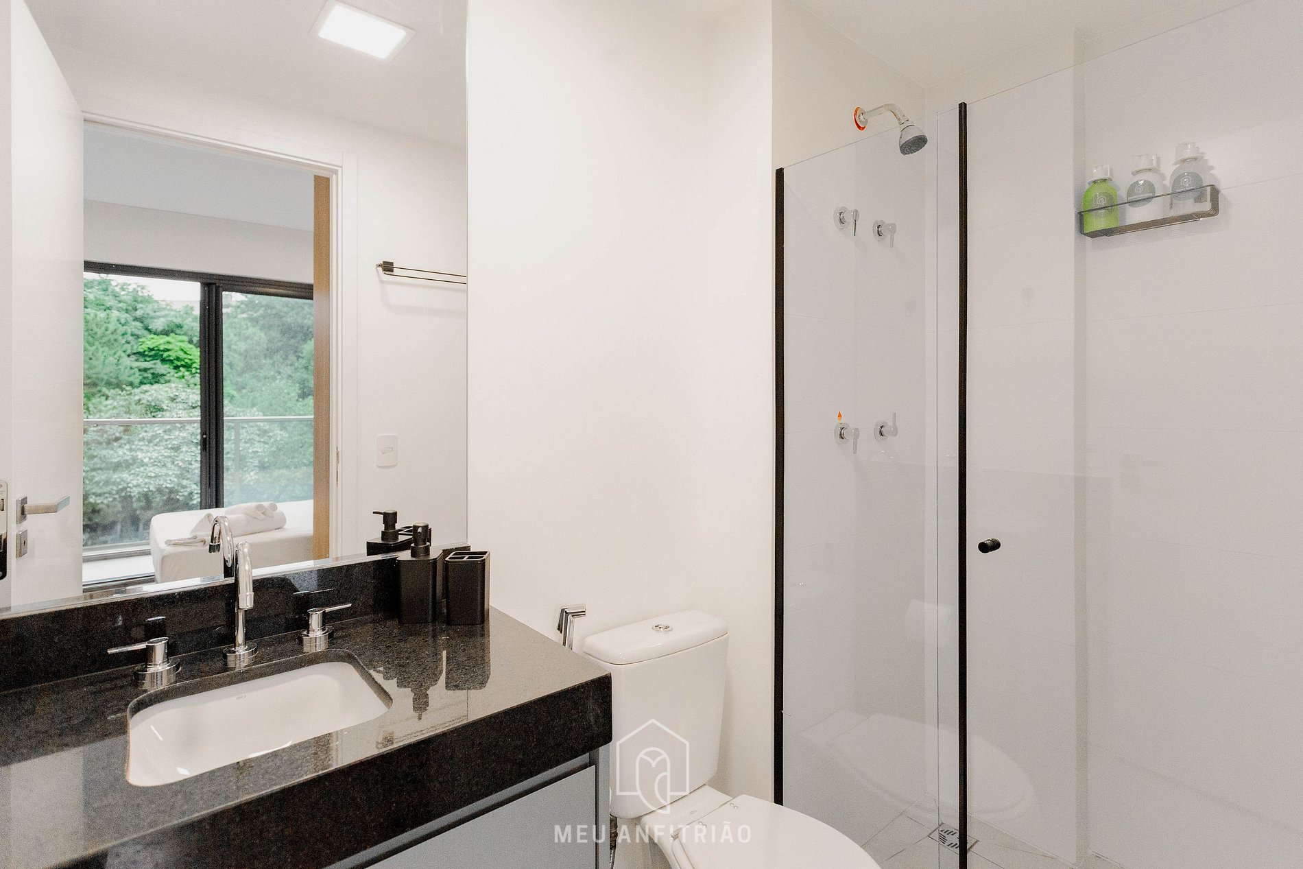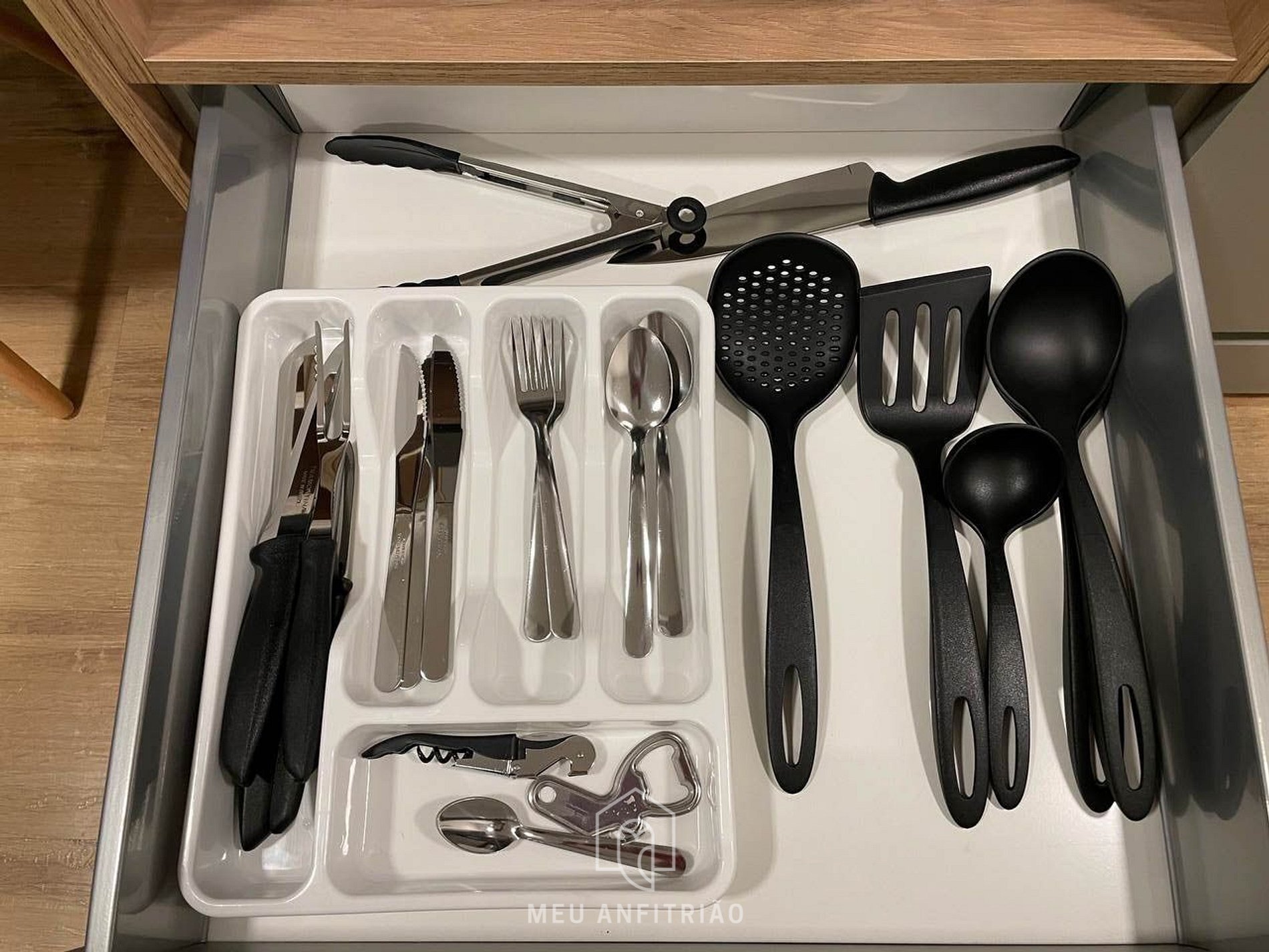 No mesmo ambiente, dispomos de uma cozinha com todos os utensílios necessários para uma estadia prática como geladeira, micro-ondas, fogão cooktop, cafeteira Nespresso entre outros. Também dispõe de banheiro com chuveiro a gás.