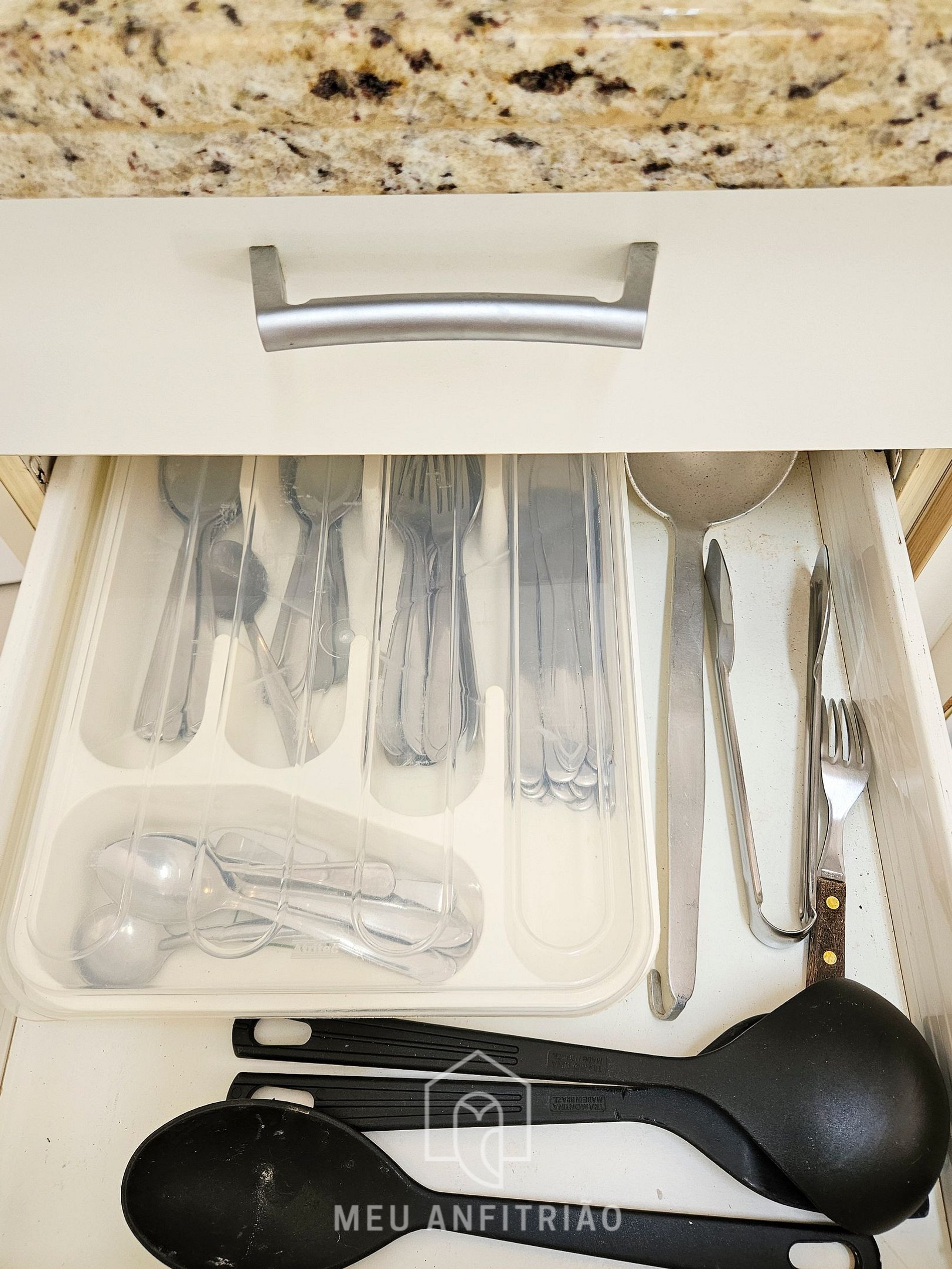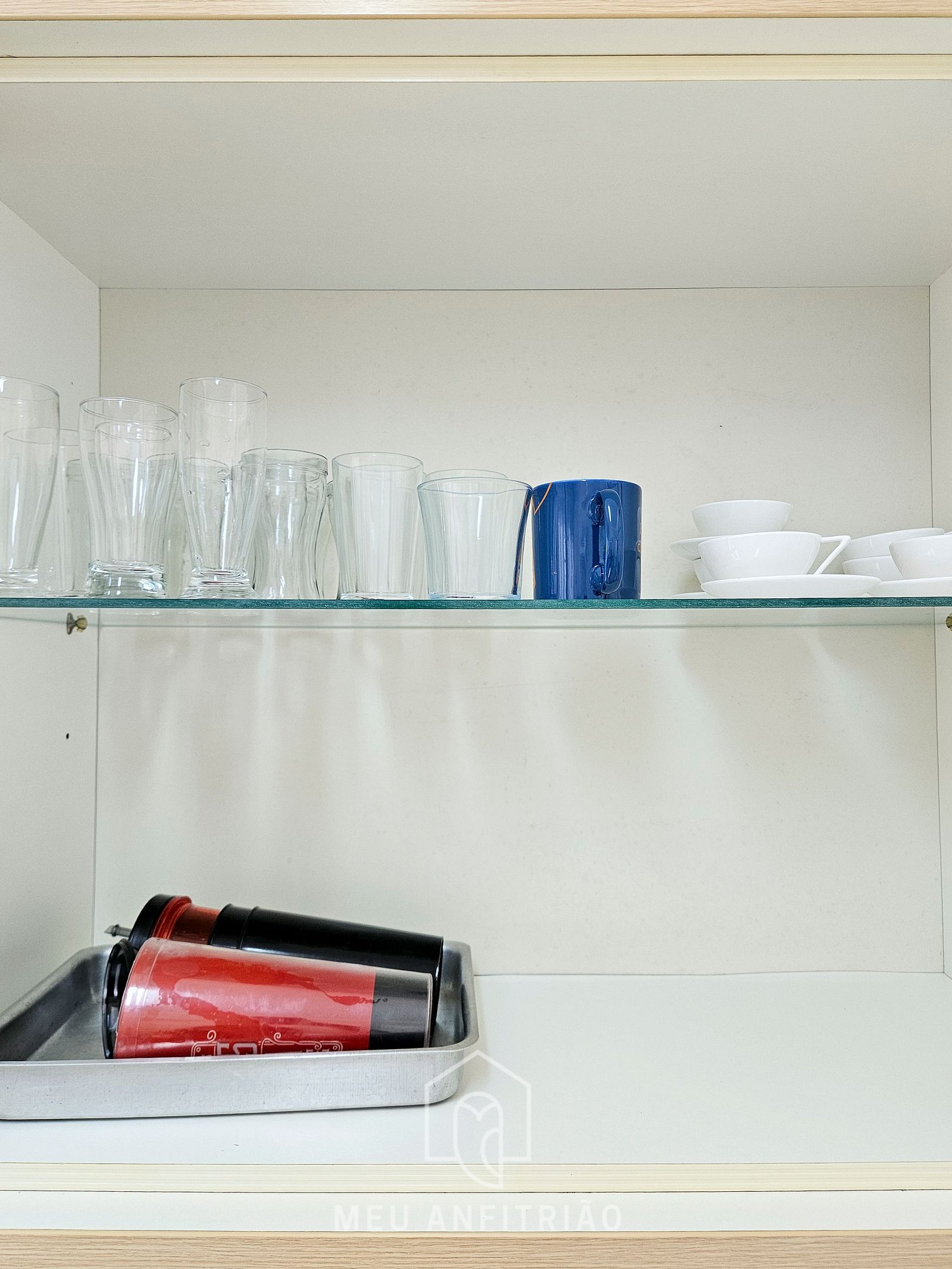 - Cozinha com os principais itens para uma estadia confortável e tranquila, como geladeira, fogão, forno, depurador, micro-ondas, air fryer, pipoqueira, lava-louças entre outros.