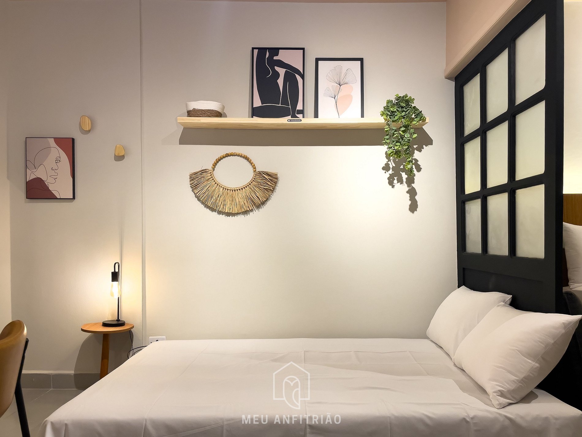 O flat oferece uma decoração aconchegante e, ao entrar, o hóspede terá à disposição: