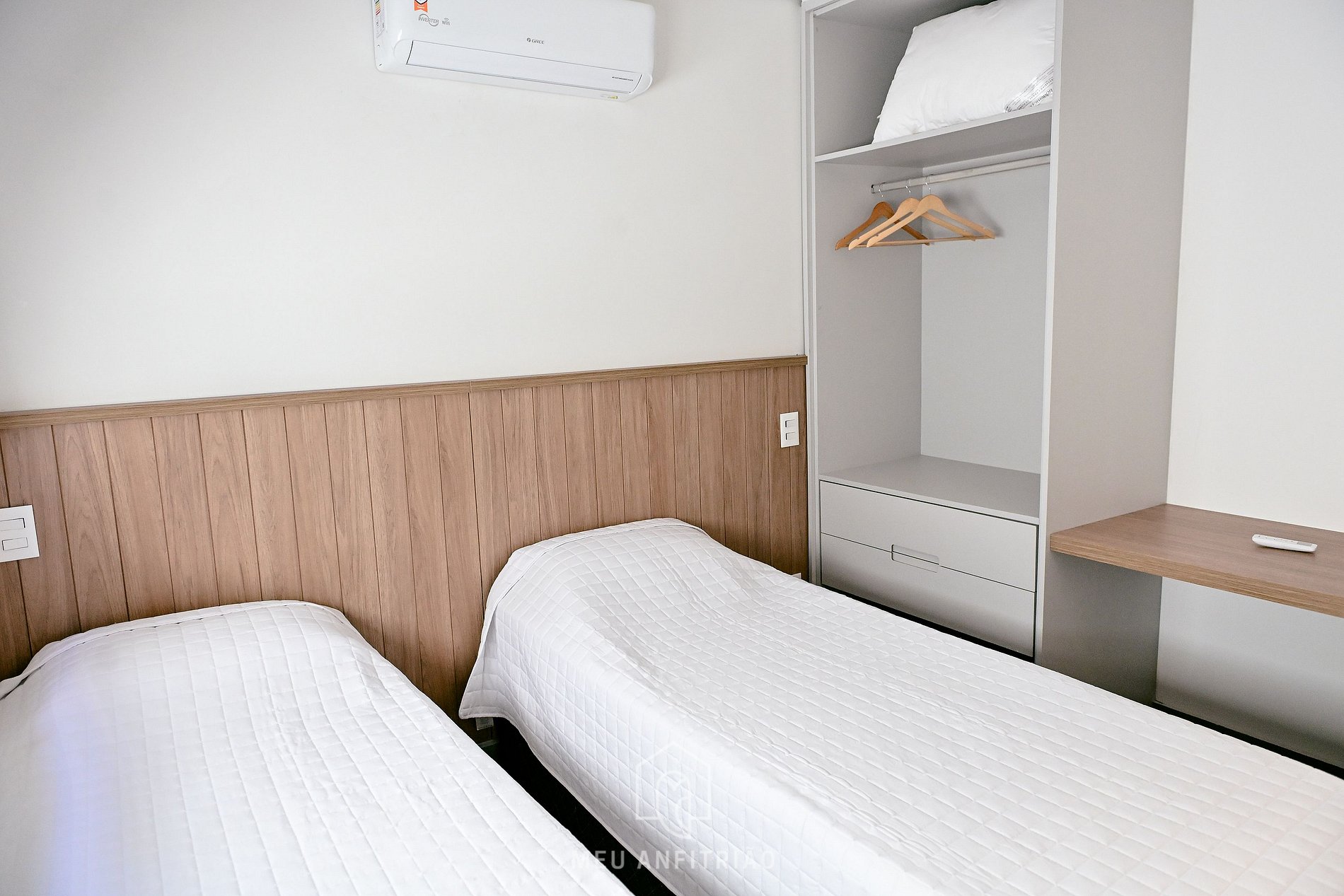 - Suíte 3: duas camas de solteiro, guarda-roupa e ar-condicionado.